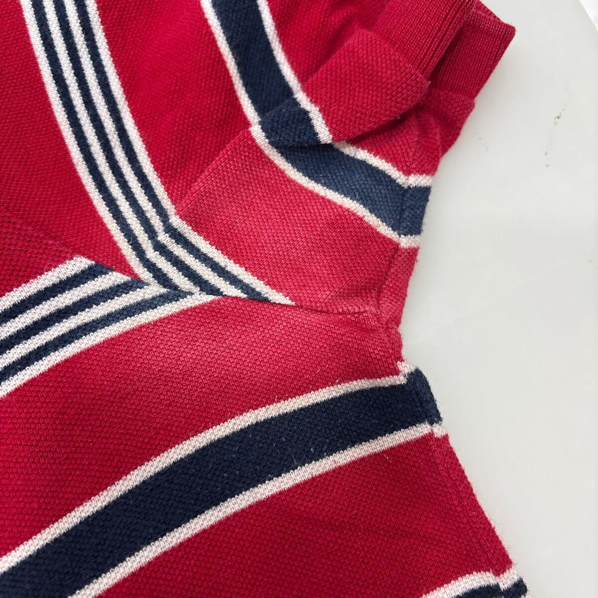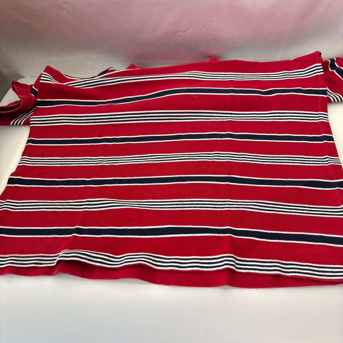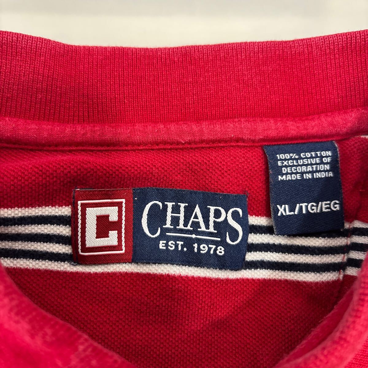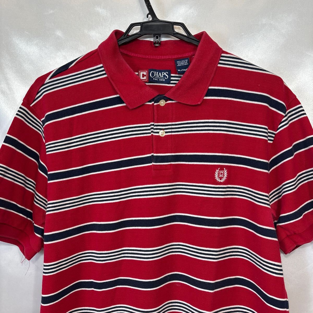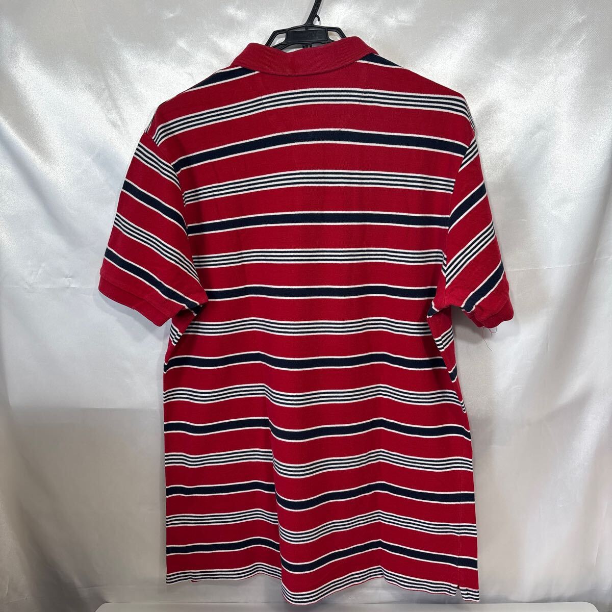 135♪USユーズド★チャップス Chapsポロシャツ 半袖ブランドメンズ刺繍ロゴ コットンレッドストライプUS-XLサイズ(使用感2XLサイズ)