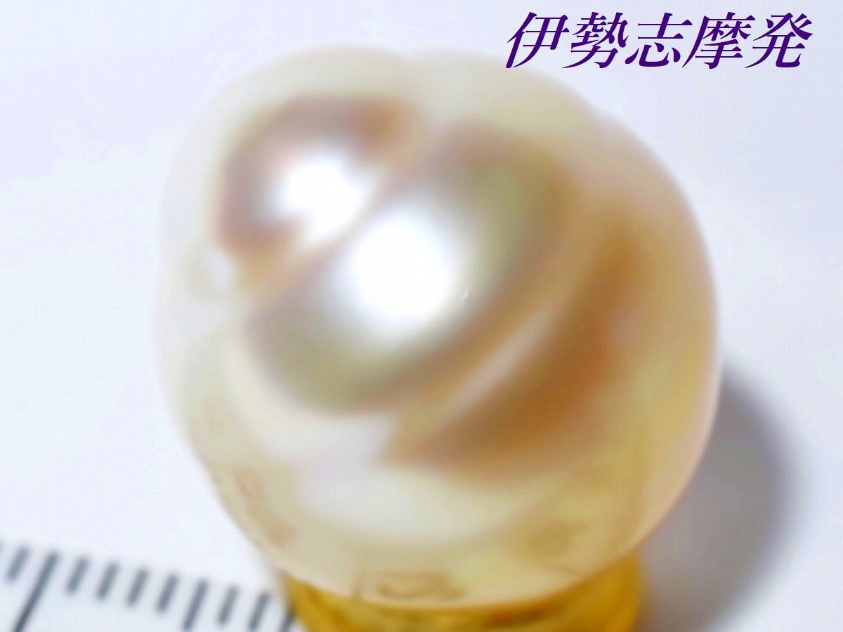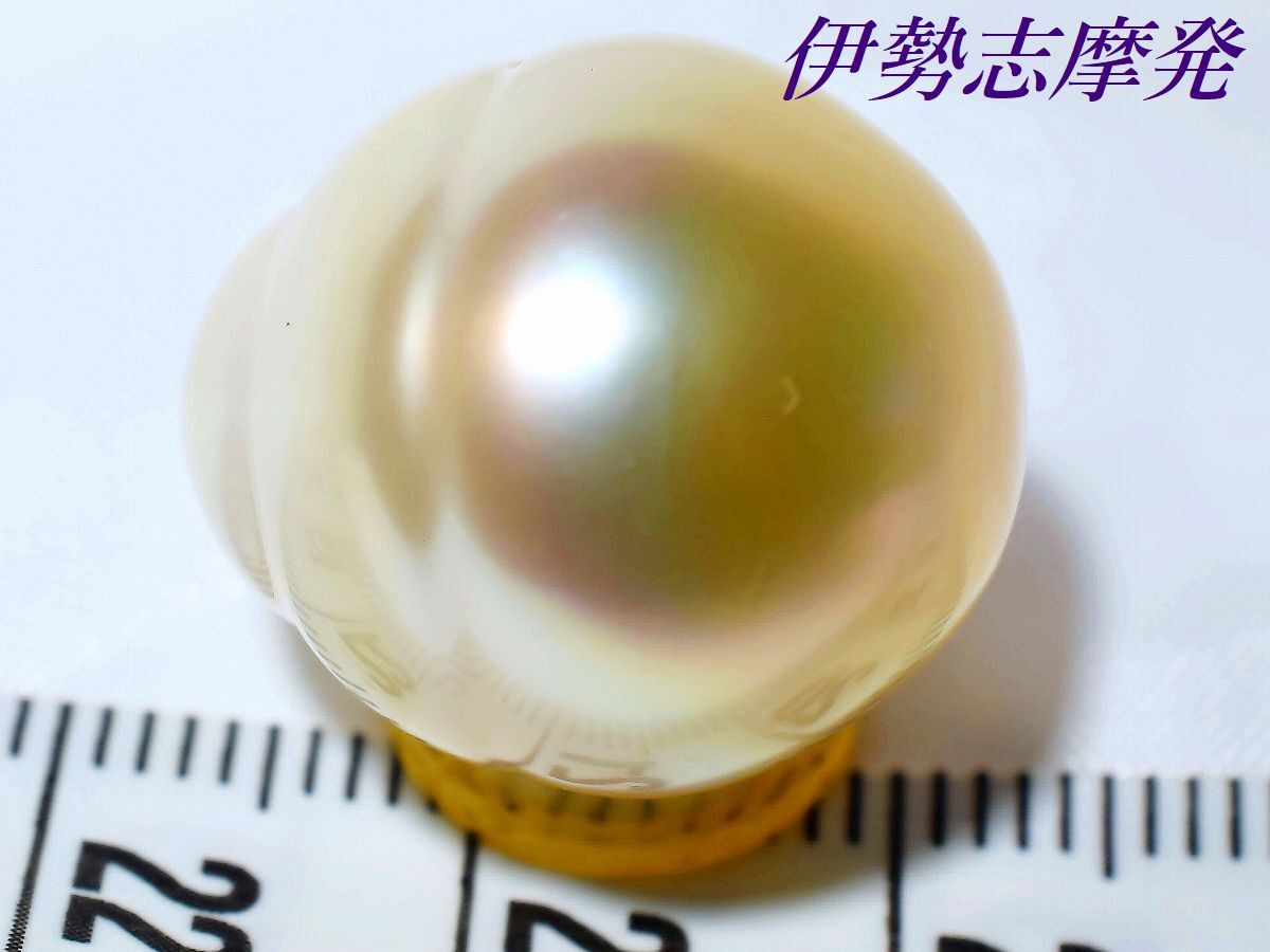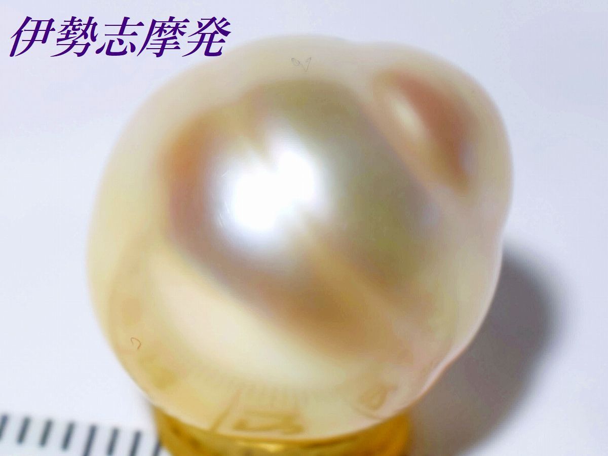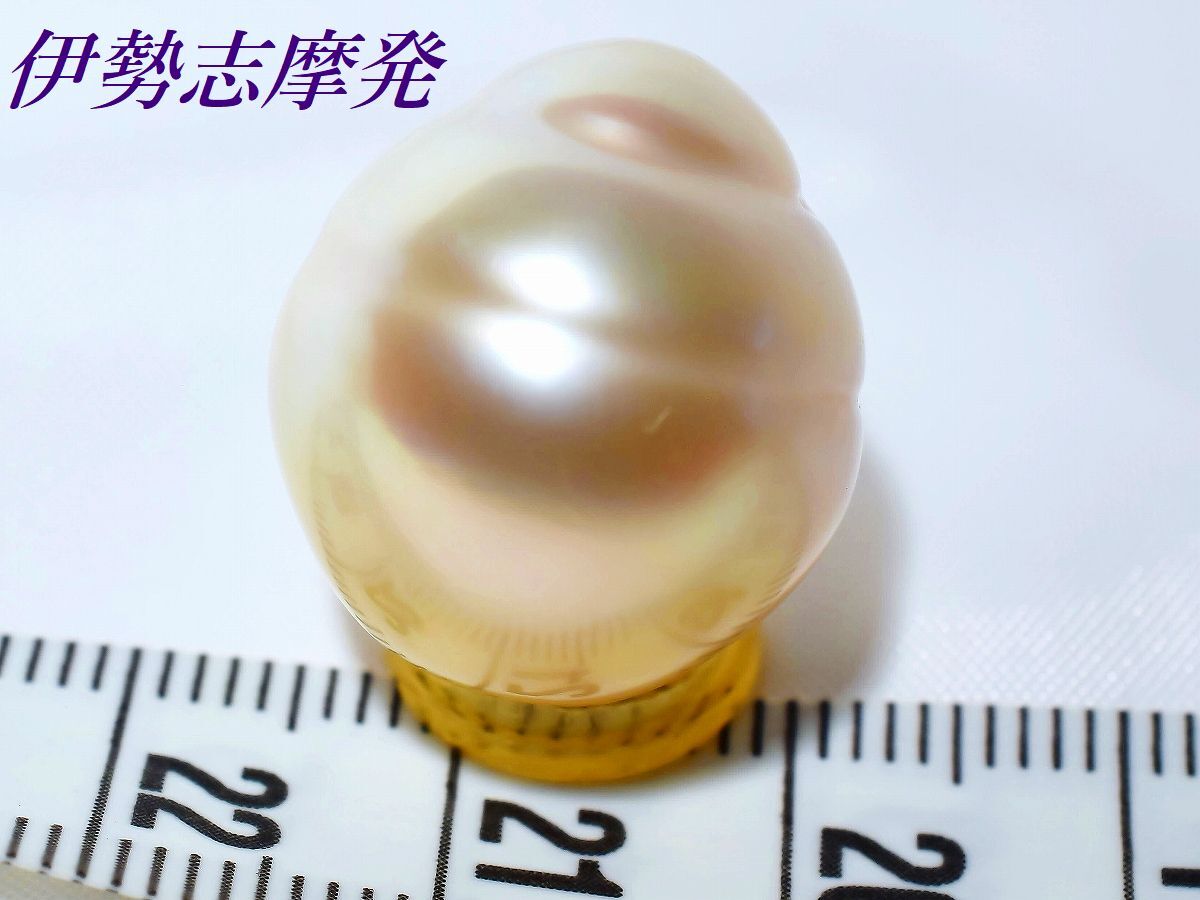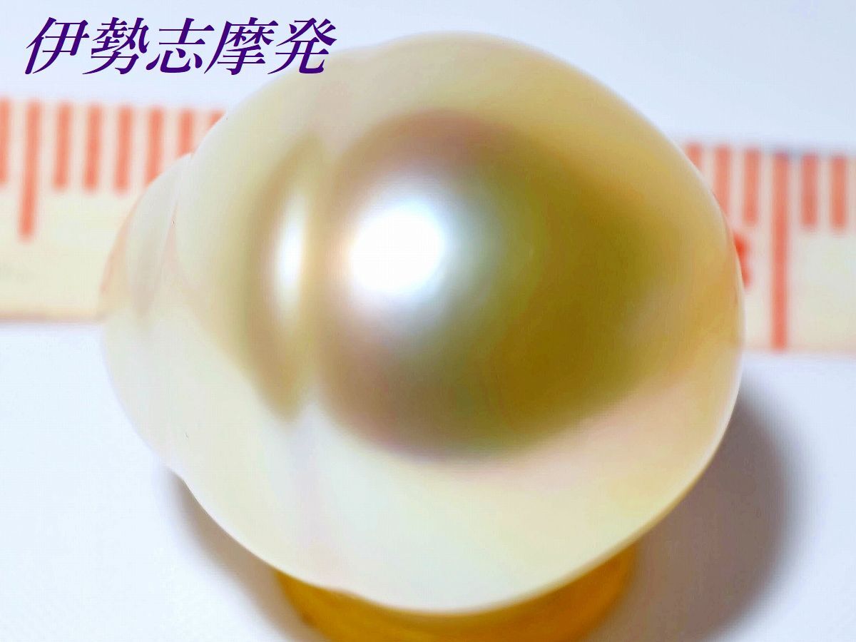【真珠の種類】 南洋白蝶ナチュラル真珠 【珠サイズ】 縦19,45㎜x横17,35㎜ 【珠の形状】 鈴のようなドロップ型 【色】 天然浅いゴールド 【巻き】 非常に良い◎ 【照り】 非常に良い◎ 【キズ】 ほとんど無し・薄いサークル 【エクボ】 ほとんど無し(サークルの上) ◆縦19,45㎜x横17,35㎜の圧倒的な存在感!南洋白蝶真珠の天然ゴールドカラー♪キュートな形は鈴のようなドロップ型です。◆ 半端なくデカい!存在感のある大きさと気品ある美しい輝きが魅力的で、大変希少価値の高い真珠です。インパクト大のリングやペンダントトップなど、オリジナルのパールジュエリー作りに如何でしょうか。 柔らかで上品なゴールド色、きめが細かくつるっつるの美珠です。目立った瑕はありませんが浅めのサークルの入った珠です。多くの人を魅了してやまない存在感があり、装飾品としての価値も高まります。 内部から光を放つような深いテリを持つも南洋真珠は、その大きさと気品ある輝きから、特別な場面での着用に適しています。結婚式やパーティー、重要なビジネスシーンなど、フォーマルな場面で存在感を放ちます。 リングやトップその他思いのままのゴージャスな逸品作りに!アクセサリーにした時に抜群の輝きを放ち、身に着けたときの印象がゴージャスで、きっと大いに人目を引く事でしょう。 早々出ない美しい形、サイズ!無駄なコストを一切かけず10万円を切ったこのような価格設定が実現しました。特別価格の98,000円で如何でしょう! | ||||||||