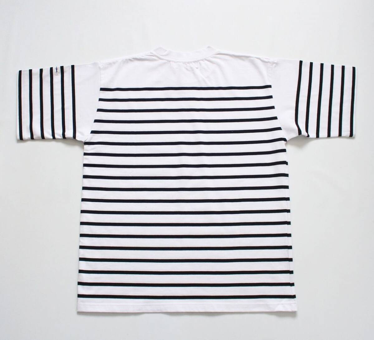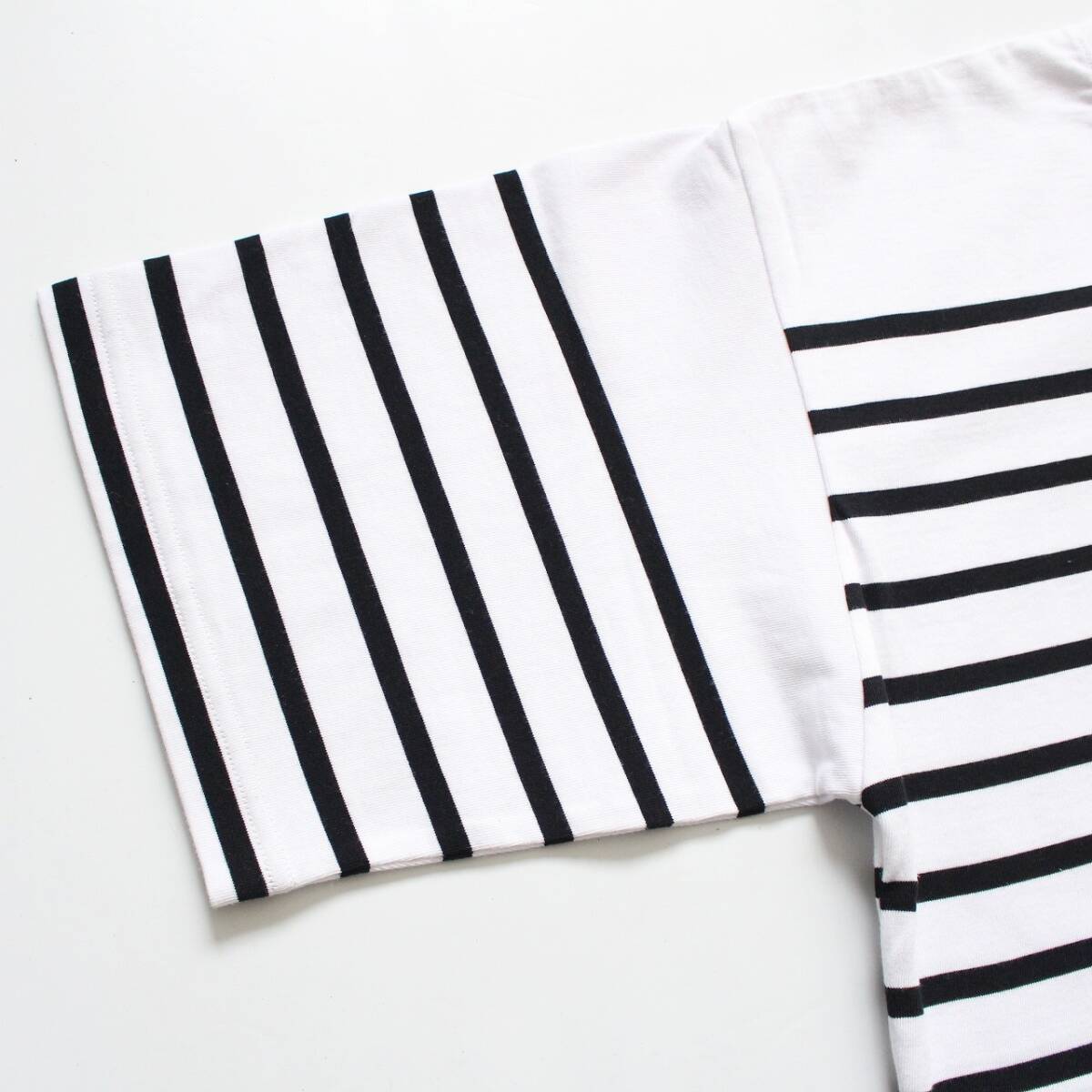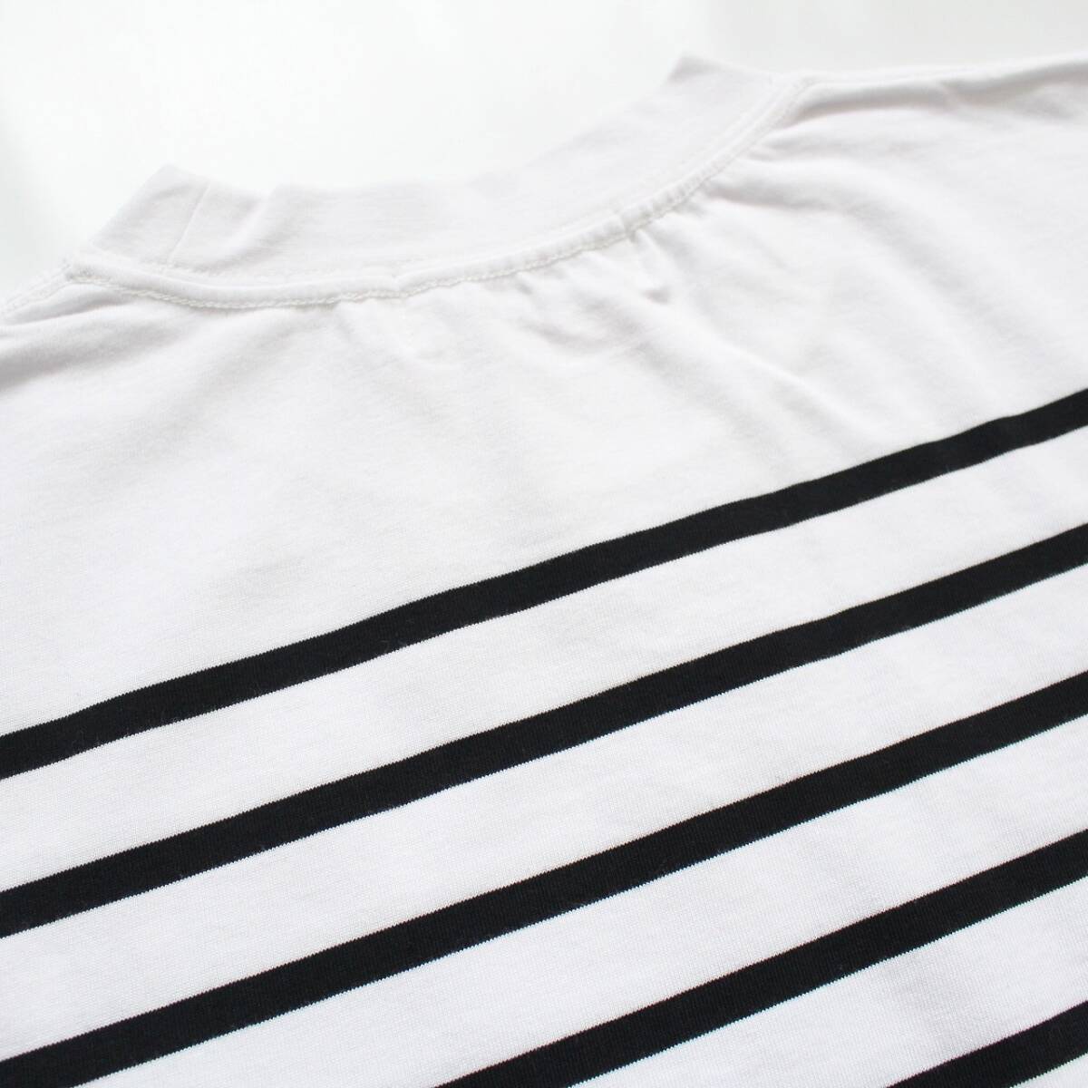 しっかりした生地感のボーダー柄コットン天竺素材で、襟はクルーネック、