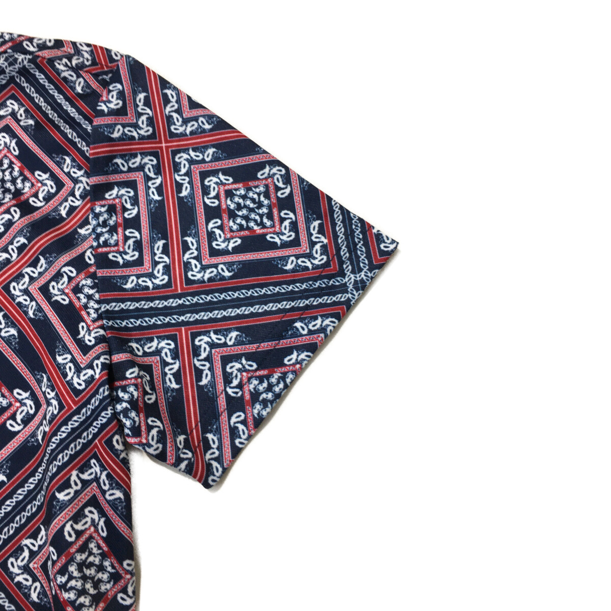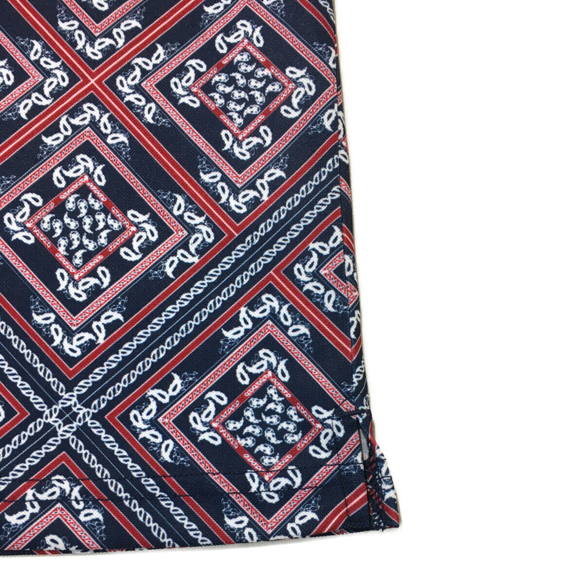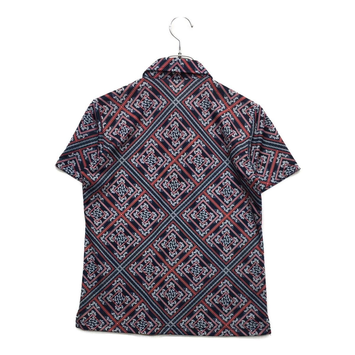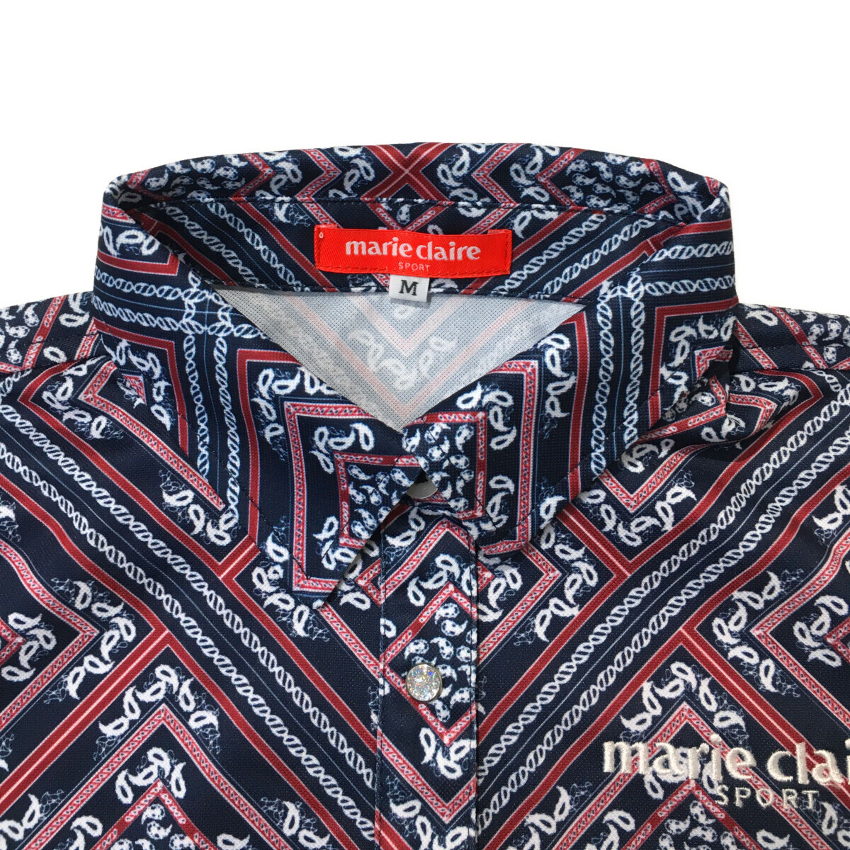 coco 中古【値下げ】 マリクレール mariclaire 半袖ポロシャツ M 紺 ネイビー ペイズリー柄 総柄 レディース ネコパケ発送可 96975