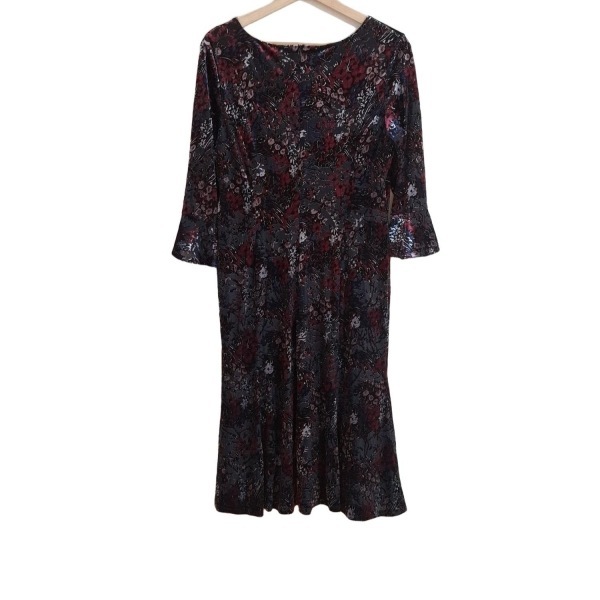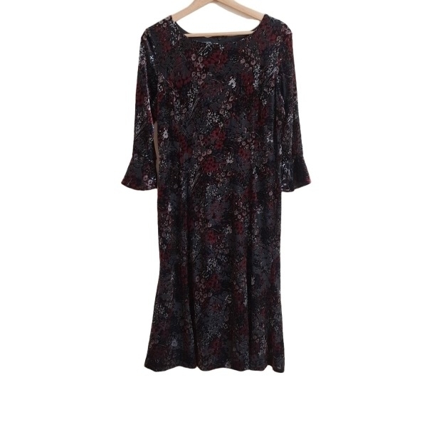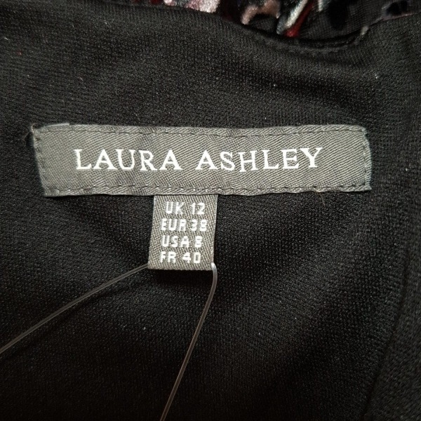 ローラアシュレイ LAURAASHLEY サイズ8(USA) M - 黒×ボルドー×マルチ レディース クルーネック/七分袖/ロング/花柄 ワンピース