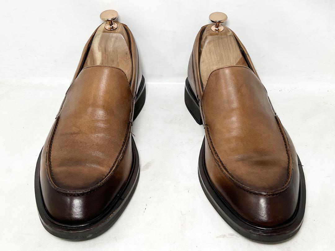 即決★美品 ecco★41=約25.5cm レザースリッポン エコー 茶 ブラウン シューズ ローファー ドレス 本革 革靴