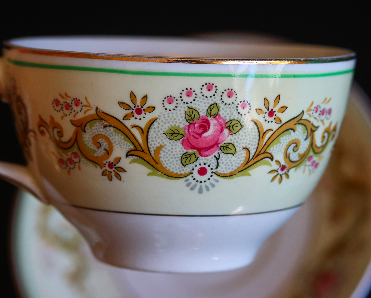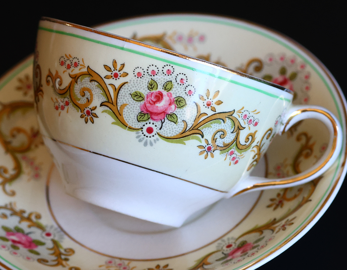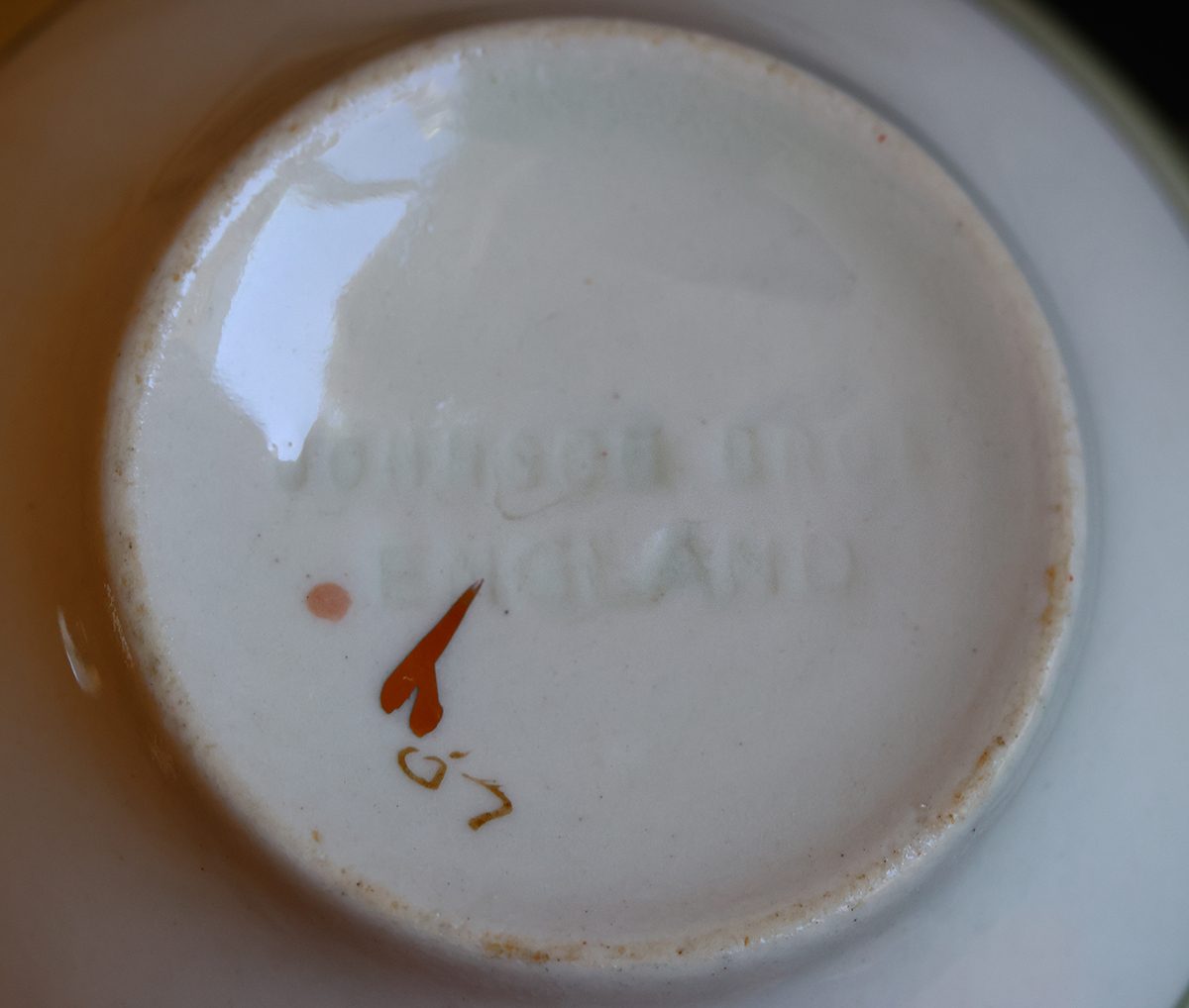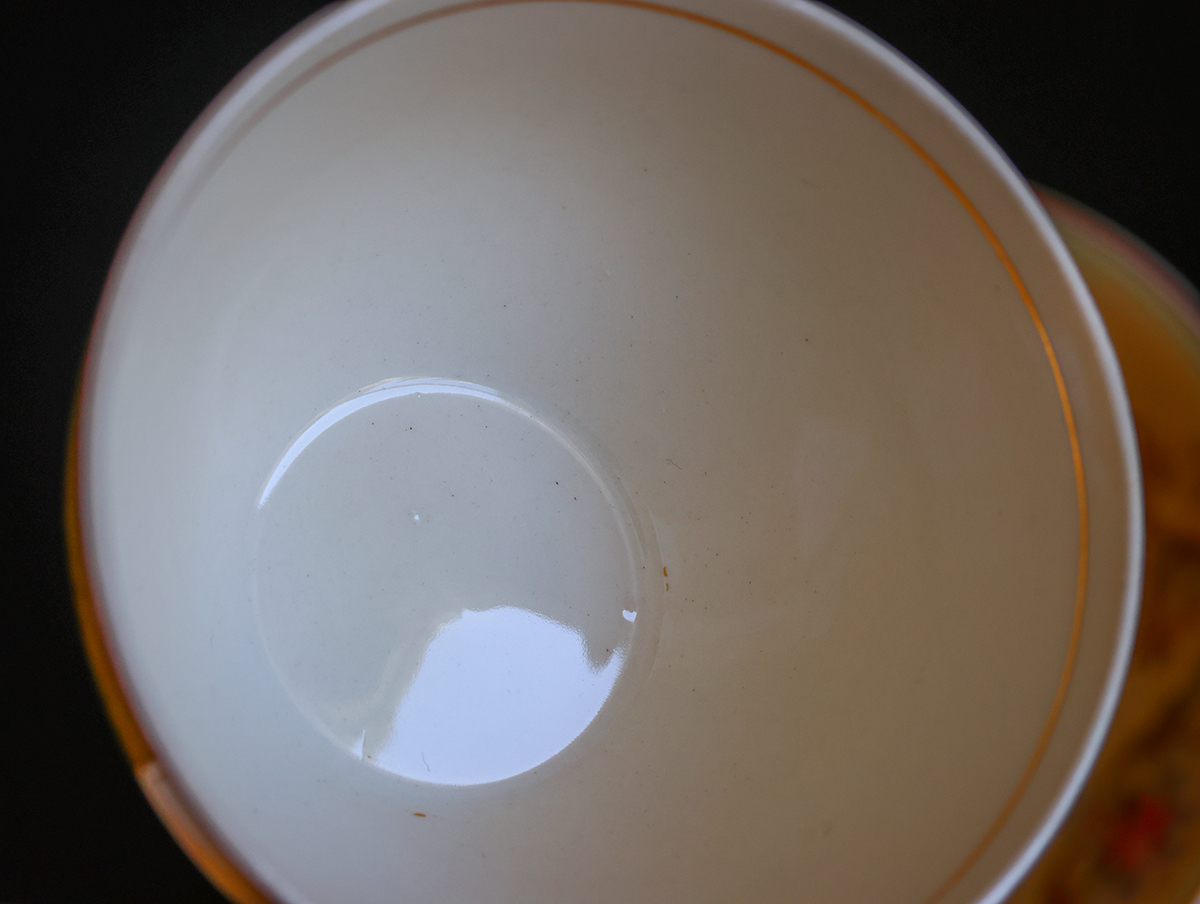 | 【 商品の説明 】 ジョンソンブラザーズ ツイフォード ペアリーク カップ&ソーサー 製造年:1950年~1970年代 製造国: イングランド カップ:口径 8.8cm 高さ 7.5cm 容量 210ml ソーサー直径 14.7cm イギリスのジョンソン・ブラザーズ社”ツイフォード ペアリーク”シリーズのポーセリン製のカップ&ソーサーです。 クリーム色の素地に、繊細な小花模様とピンク色のバラが描かれた優雅なデザインです。 ヒビ、カケなく、ツヤがあり、綺麗な状態です。リムのざらつきや使用感もなくとても艶やかです。表面に経年による嵌入が見られます(画像参照)。 カップ、ソーサーともに刻印があります(画像参照)。 発送サイズ:60サイズ (下記の料金表を参照してください)K459-15 ・・・・・・ 商品はすべてアメリカ、ヨーロッパのアンティーク、ビンテージグラスになります。 当時の製造技術によるガラスの歪みやしわ、経年による細かいキズや擦れ等はどの商品にも見られますので、特にひどいもの以外は説明を省略しております。 グラスひとつひとつに特徴があることをご理解いただきまして、入札をしていただけたらと思います^^。 複数の商品を購入していただきますと、まとめて発送しますので送料がお得になります。 ( こちらをクリックしますと他の出品商品を一覧できます) 商品のお取置きをご希望の際には、落札後の最初のメールでお知らせください。 ご不明な点がございましたら、どうぞ終了1日前までにご質問ください。 ・・・・・・