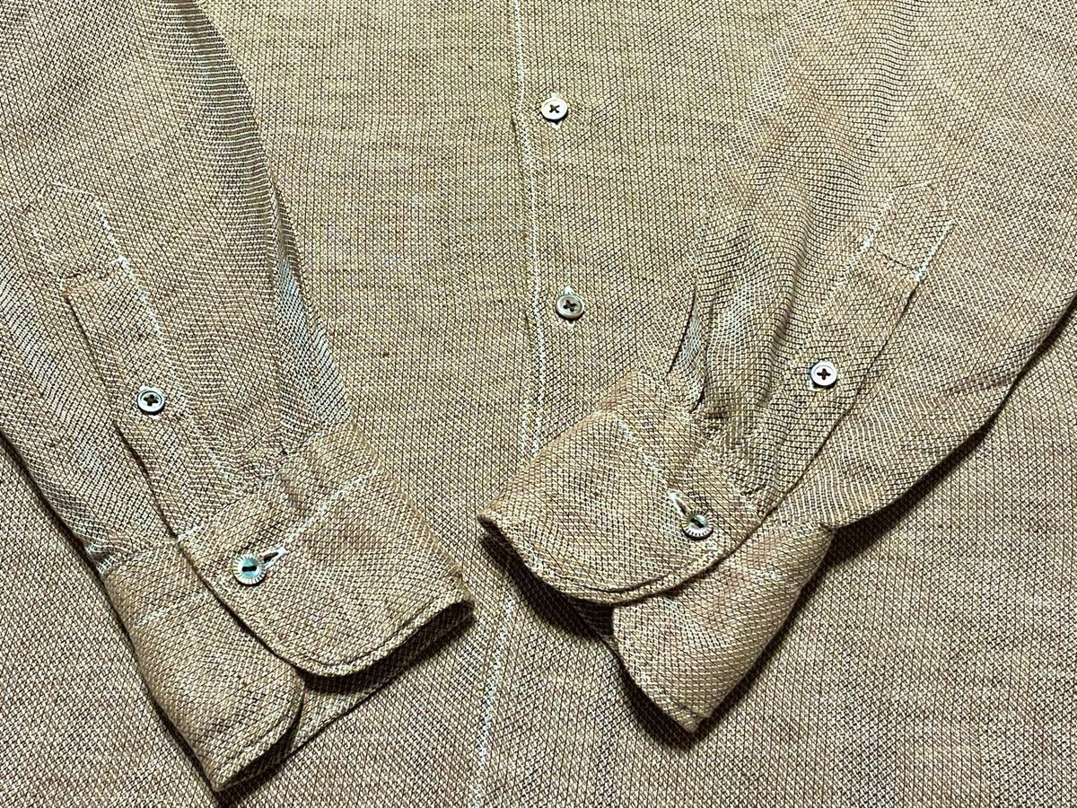 凹凸感のあるリネンとコットンの混紡生地なので、肌さわりがよく涼しいので春先から夏にかけてピッタリのおすすめの一品です。