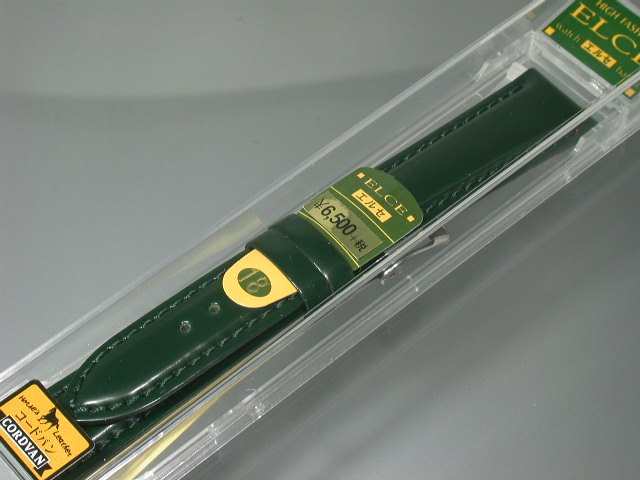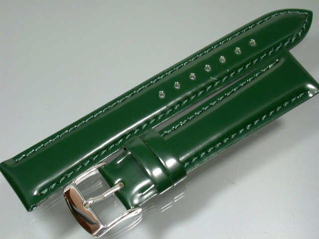 【送料無料】コードバン馬皮革!見事な光沢バンド 18mmグリーンELCE16MP