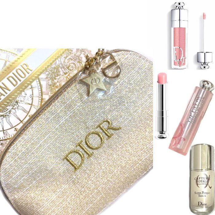 DIOR ディオール ホリデー オファー ポーチ 4点セット 限定 cd-gift-2024-offer 口紅 リップグロス リップマキシマイザー001 カプチュール トータル ル セラム (美容液) ゴールドツイードポーチ ビューティ化粧コスメ ギフト コフレ