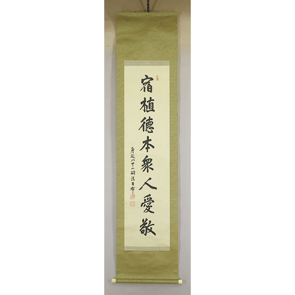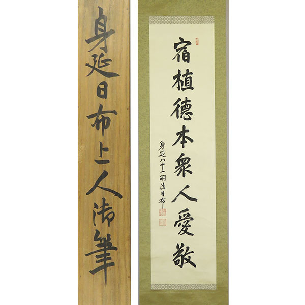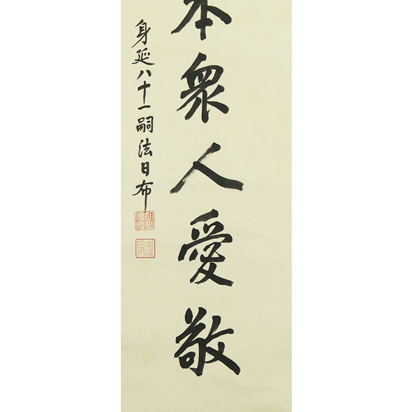 B-4957【真作】杉田日布 肉筆絹本 一行書 掛軸/日蓮宗 身延山久遠寺81世法主 日蓮宗24代管長 日蓮宗大学長 墨蹟 書画