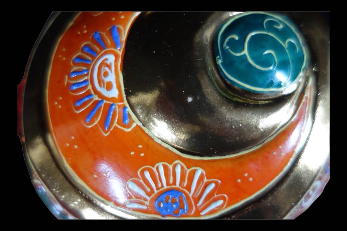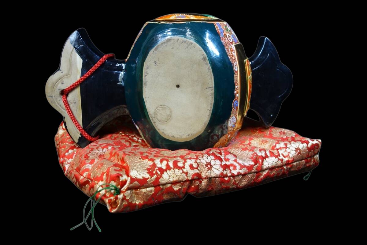 「福を呼ぶ」縁起物の象徴! 九谷焼 鶴亀盛宝小槌 打ち出の小槌 座布団付 置物 1990〜2000年代