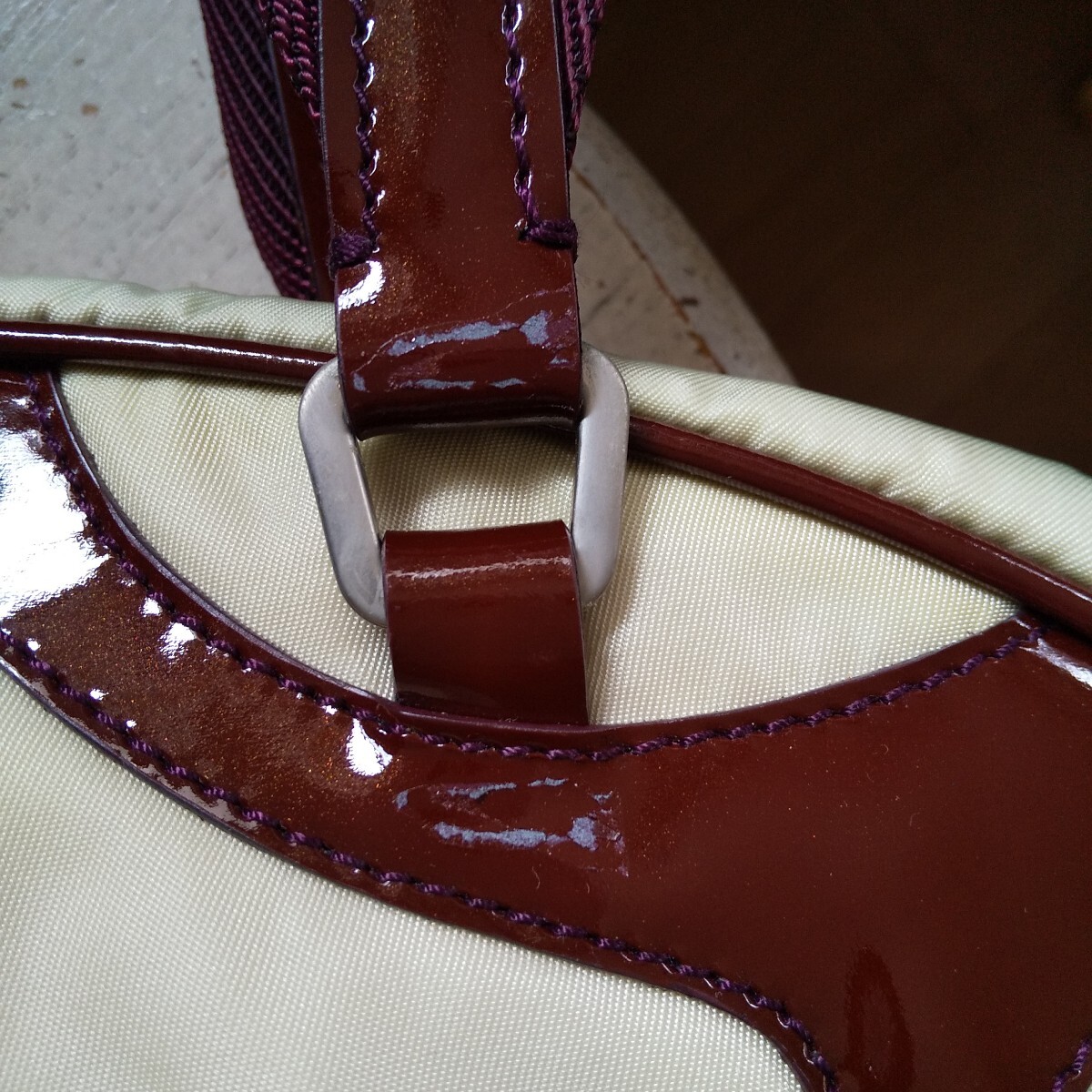 ハンドルの下にエンジ色の部分に剥がれがあります。(写真7~10)