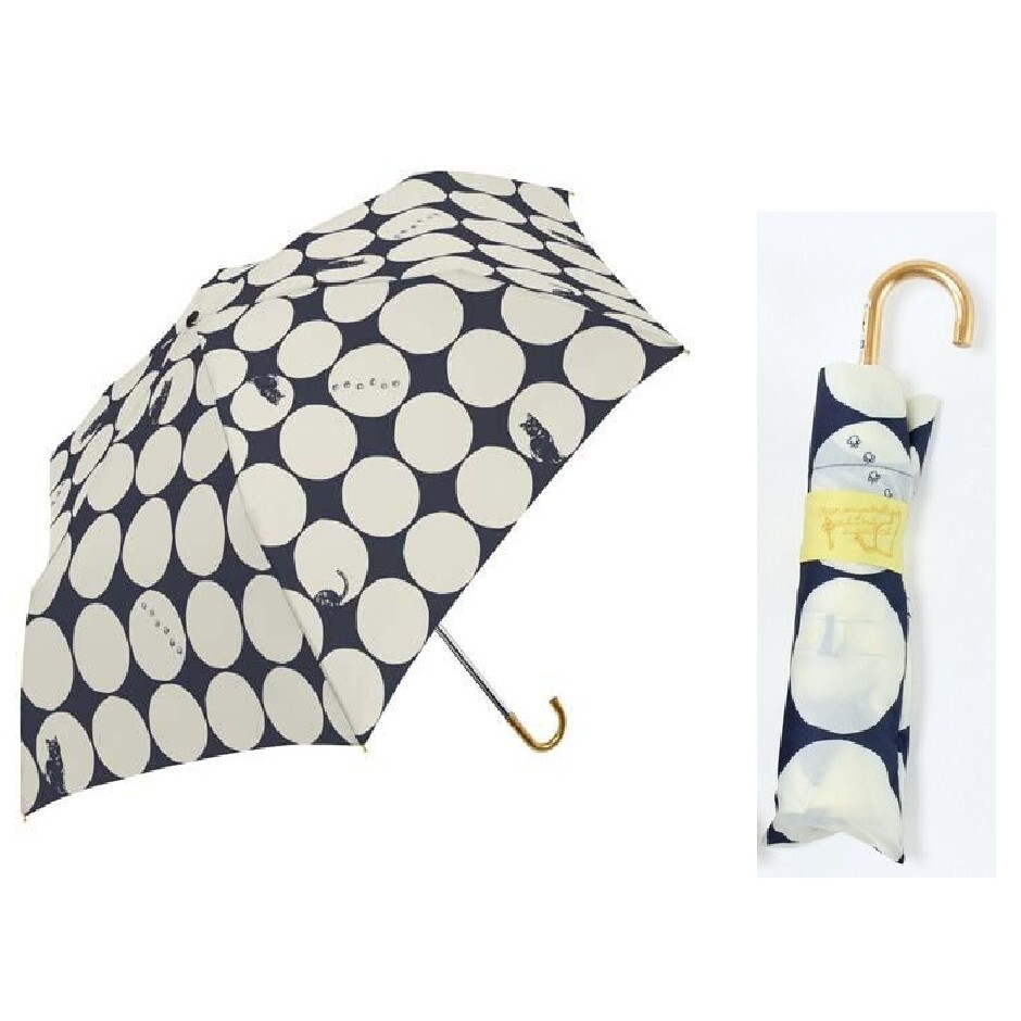 【即決】★折り畳み傘 大きい水玉と猫★ 55cm 三国 耐風楽々ミニ 風に強い ネコ 折りたたみ傘 メッセージタグ付 // S2100101