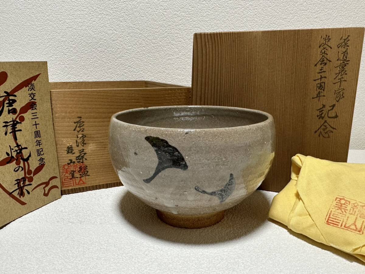 ・ 茶碗【TY725 茶道具 鏡山窯 井上東也 銀杏 唐津茶碗 淡交会三十周年記念 江戸 明治 大正 昭和 骨董品 時代物 茶道 煎茶 レトロ 】