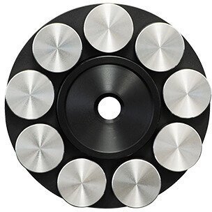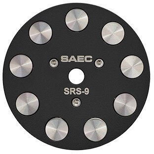 | SVM(Suppress Vibration Material)機構搭載高性能レコードスタビライザー SRS-9はこれまでの製品にはない、SVM(Suppress Vibration Material)機構を採用した革新的なレコードスタビライザーです。SVM機構とは、9個のステンレス製のセパレートウエイトを搭載するその構造に特徴があり、レコードの盤面の微細なそりに応じてそれぞれのウエイトが最適な荷重を与えるため、レコード盤全体をフラットに保ち、効果的に振動を抑制することができます。またこうした方法を用いることで、カートリッジの針先がレコード溝をトレースする際、針先に与える余計な振動から解放され、音溝に刻まれた信号を余すことなくピックアップすることが可能になります。その結果、S/N比が高まるとともに空間の表現力も向上、優れた音を構築します。また、重量を300g以下に抑えた設計とすることで、トルクの弱いレコードプレーヤーでも軸受に無理な負荷をかけることなく安心してお使いいただけます。 特徴 ・SVM機構を採用した9個の独立したステンレス製ウエイトが振動を効果的に抑制します。 ・個々のウエイトがレコードの微細なそりに対して最適な加重をもたらしノイズレベルを低減します。 ・ターンテーブルのスピンドルに触れる部分には音響的にも優れた樹脂を採用。不要な振動を防ぐとともにスピンドルを保護します。 ・重量を300g未満に抑えトルクの弱いターンテーブルでも負荷変動を与えることなくお使いいただけます。 仕様 材質:ディスク部(保持部分):硬質アルミ二ウム、ウエイト部:ステンレス 外形寸法:Φ72×高さ21.5mm 重量:298g |