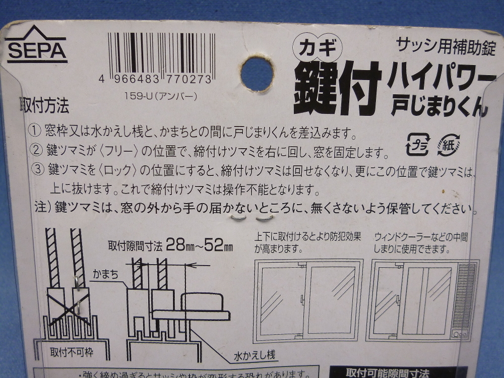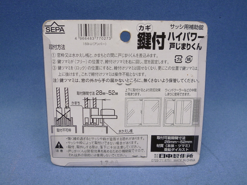 日中製作所 サッシ用補助錠 鍵付ハイパワー戸じまりくん 159-U アンバー 未使用
