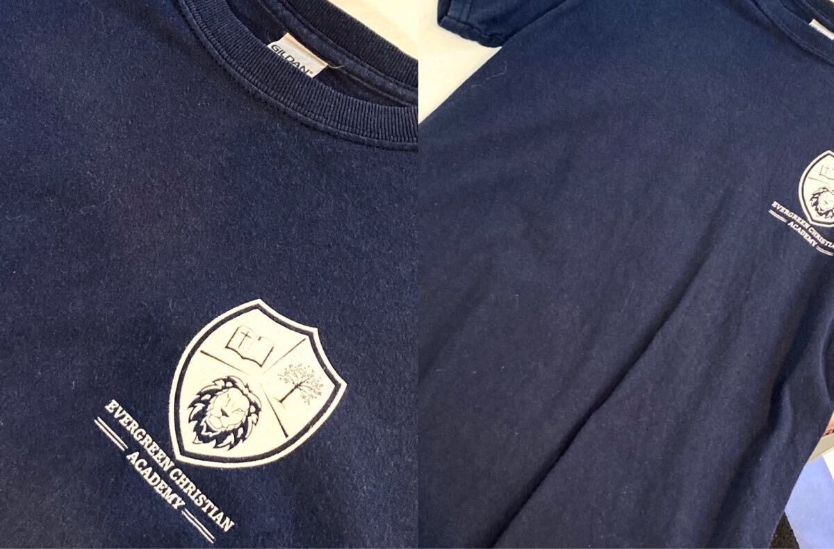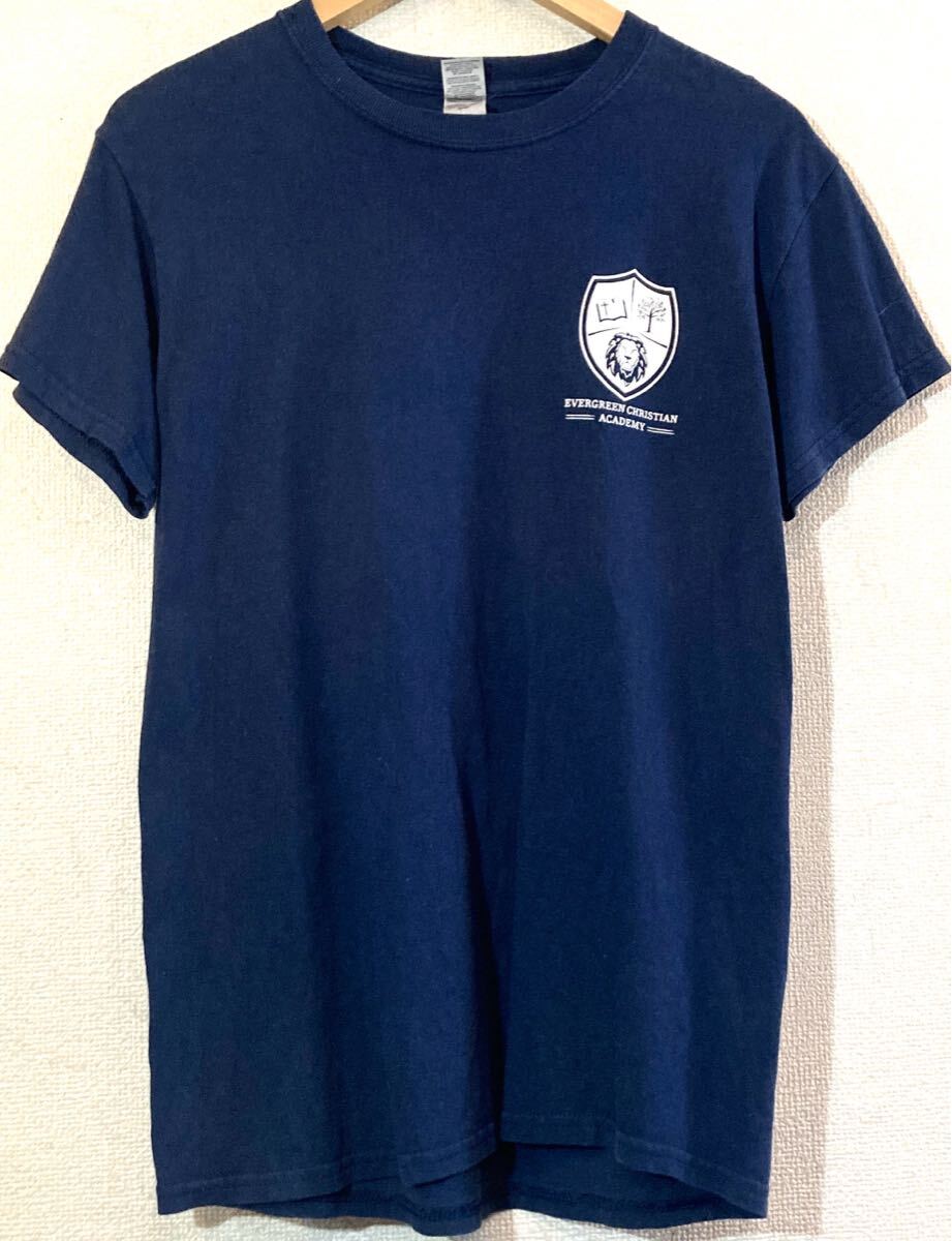 エバーグリーンクリスチャンアカデミーのプリントが入ったTシャツで、風合いの良いデザインになっています。