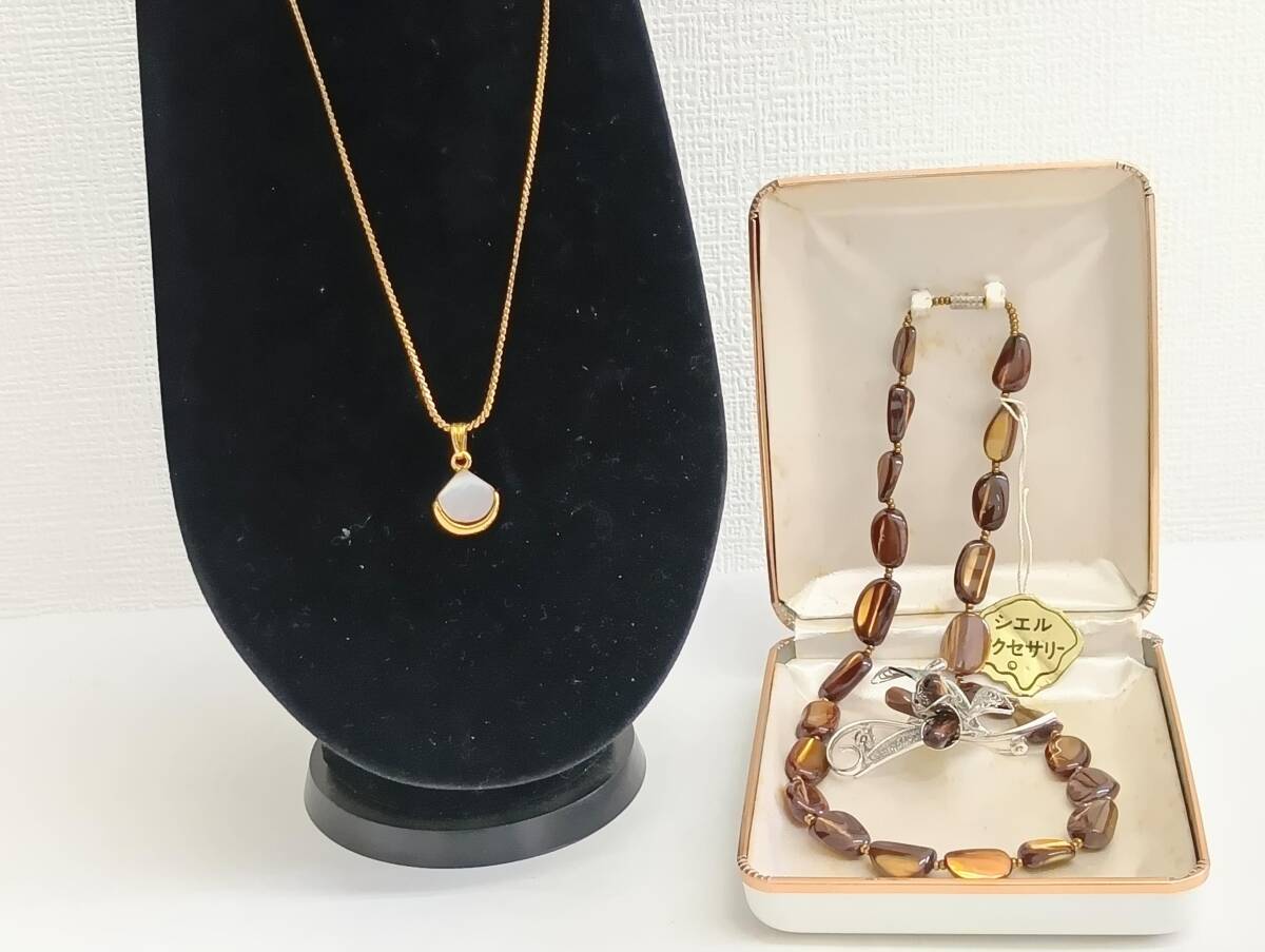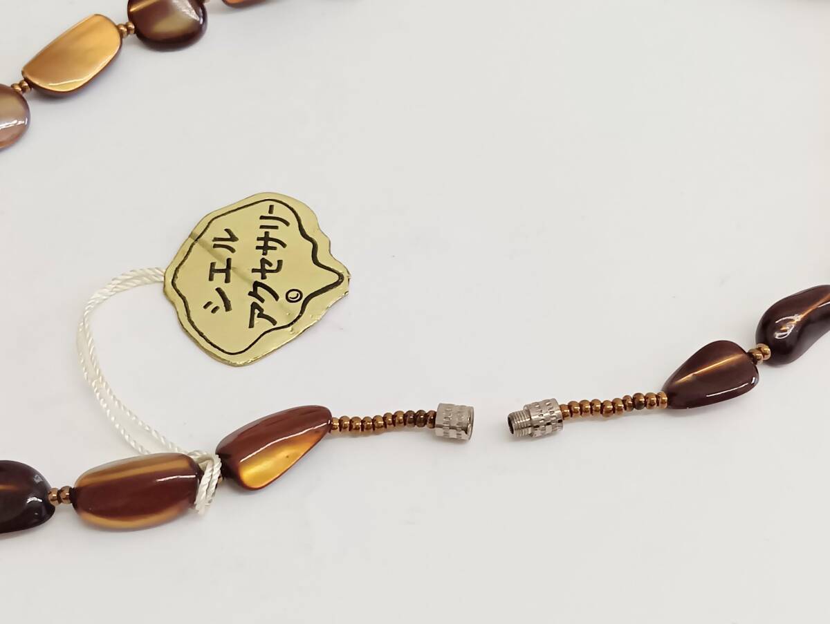 ☆貝 アクセサリー まとめ3点 ブラウンシェル ビーズ ネックレス ブローチ ホワイトシェル ゴールドカラー ペンダント ヴィンテージ |