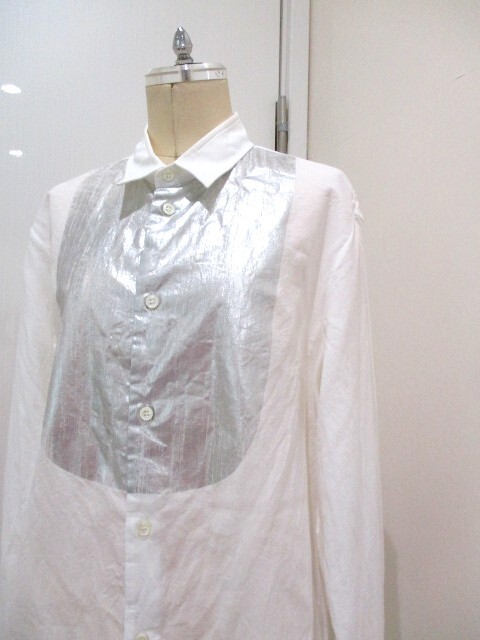 マルタンマルジェラ イタリア製 シルバー銀箔シャツ サイズ46 送料無料 メゾンマルジェラ