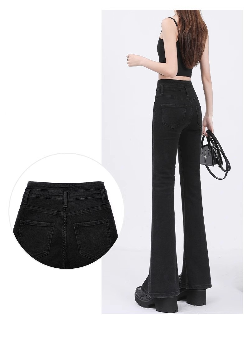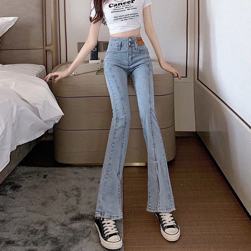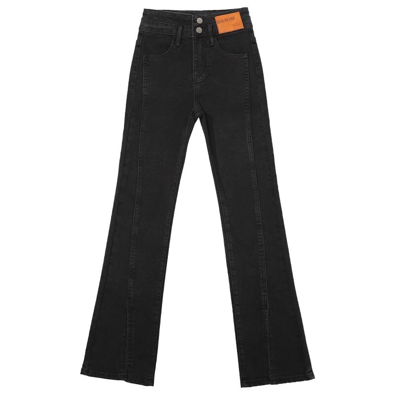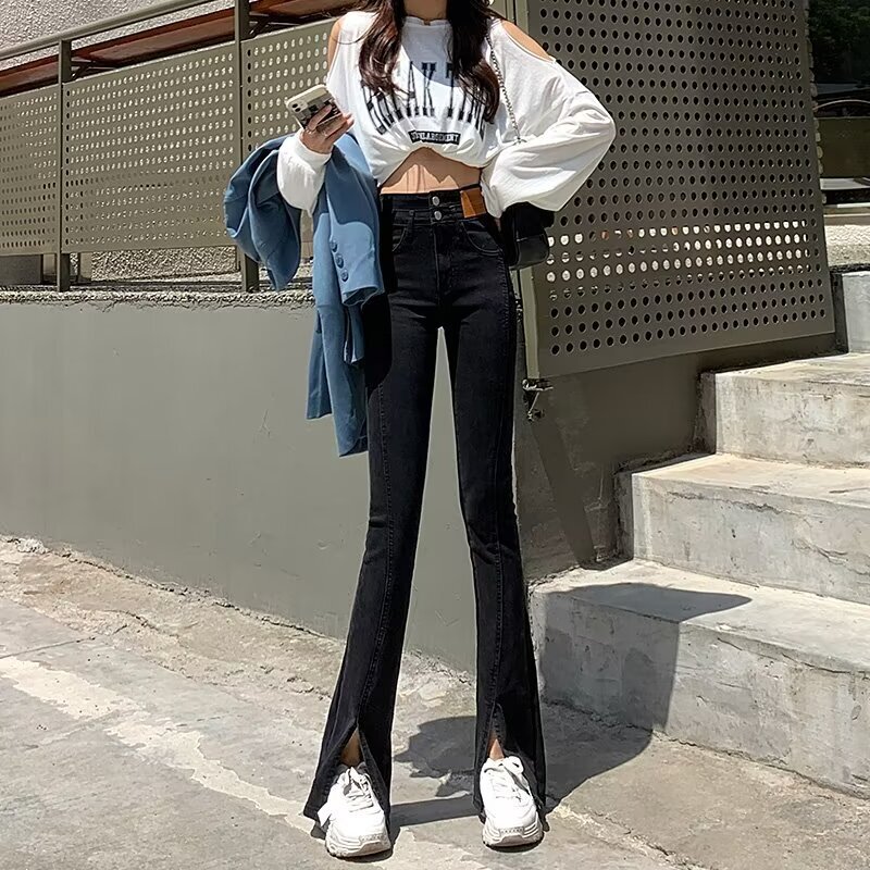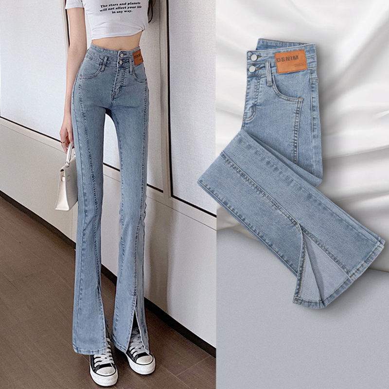新作ハイウエスト デニムパンツ 前スリット レディース デニム フレアパンツ 脚長 美脚 ジーンズ ジーパン 美尻 タイト スキニーパ3色