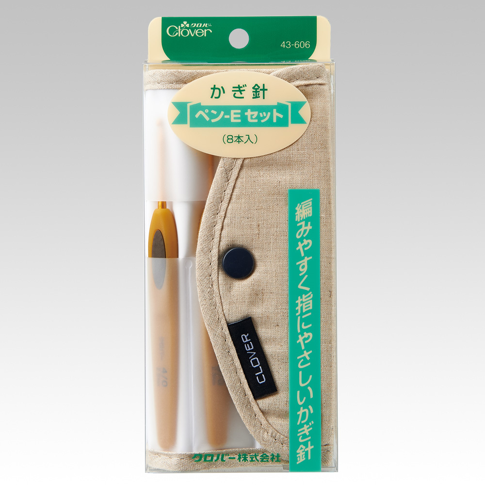 編みやすく、指にやさしいかぎ針「ペン-E」をセットに。