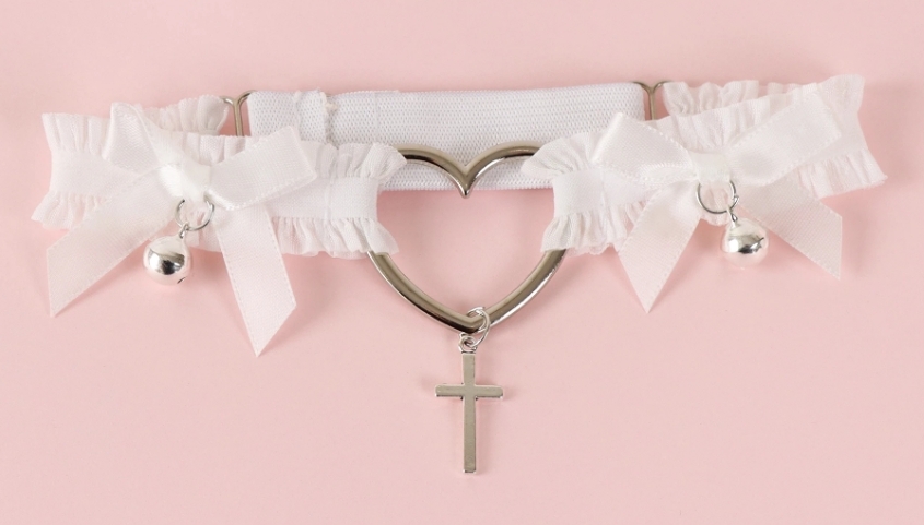 【新品】ハートリボン チョーカー レッグリング ロリータ ゴシック ゴスロリ 2本セット ホワイト