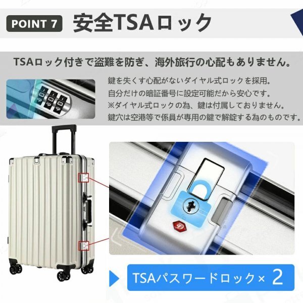 海外の国際線の空港会社ににもつ鍵かけたまま預ける旅行の必要品です。お客様が安全かつ便利に使えるようにTSAロックを搭載。機内持ち込みできます。本体の鍵穴はTSA職員の検査用ですので、お客様には付属の鍵はございません。