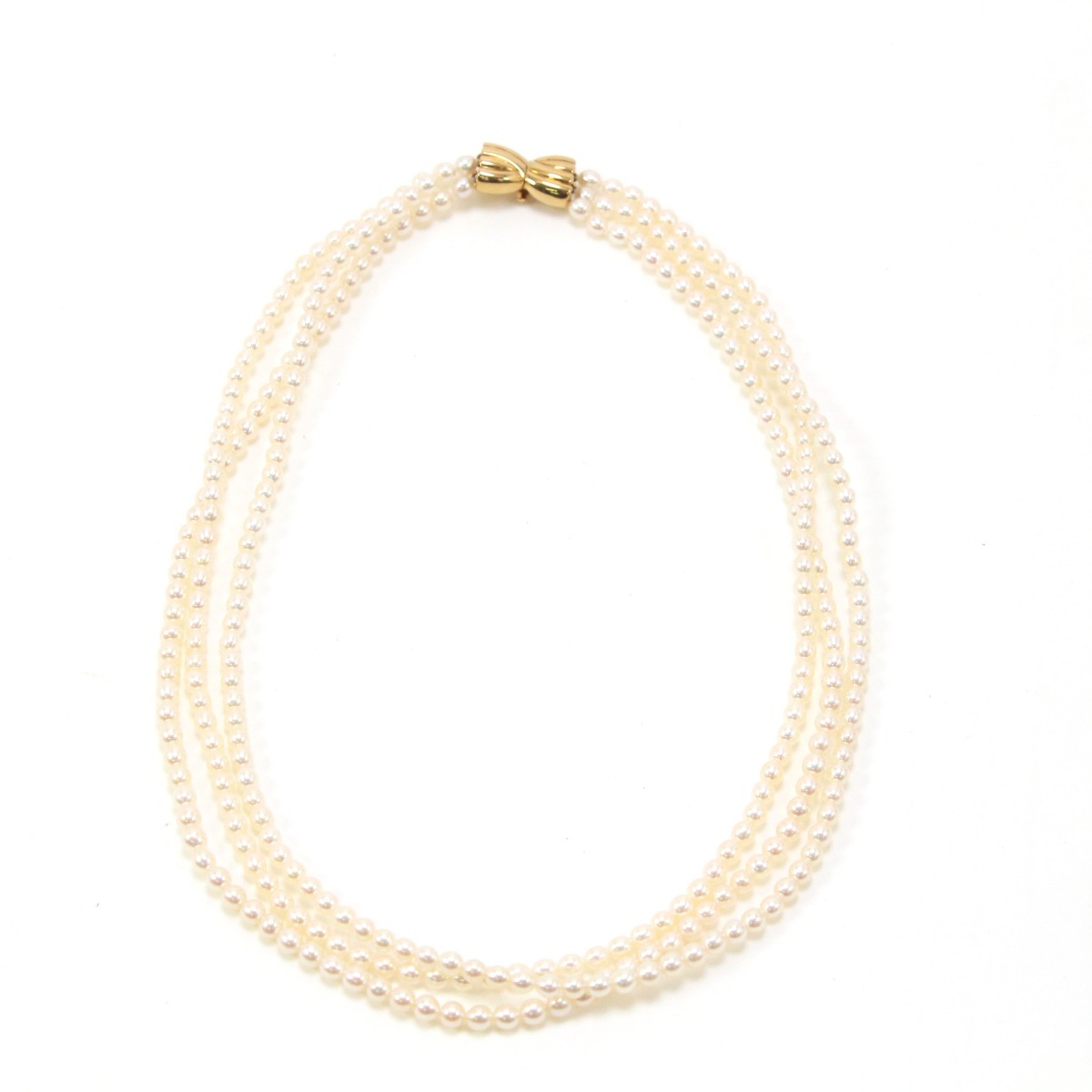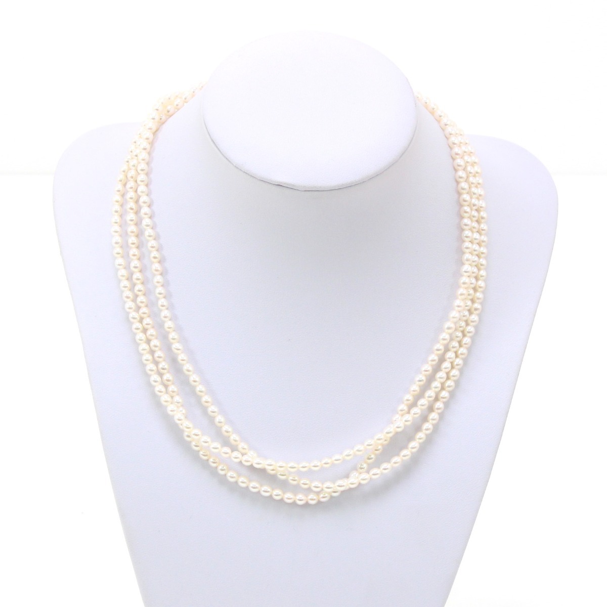 【商品名】中古 田崎真珠 淡水パール3連ネックレス 金具部分K18 やや傷や汚れあり