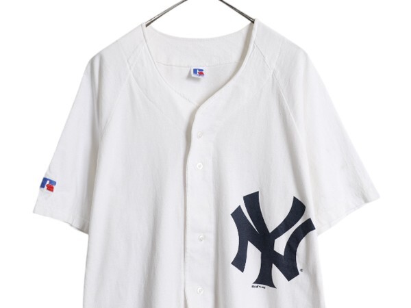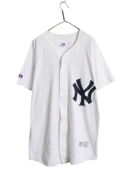 商品名 | 90s USA製 ヤンキース ベースボール シャツ メンズ XL オールド MLB オフィシャル ラッセル 大リーグ コットン ユニフォーム ゲームシャツ |