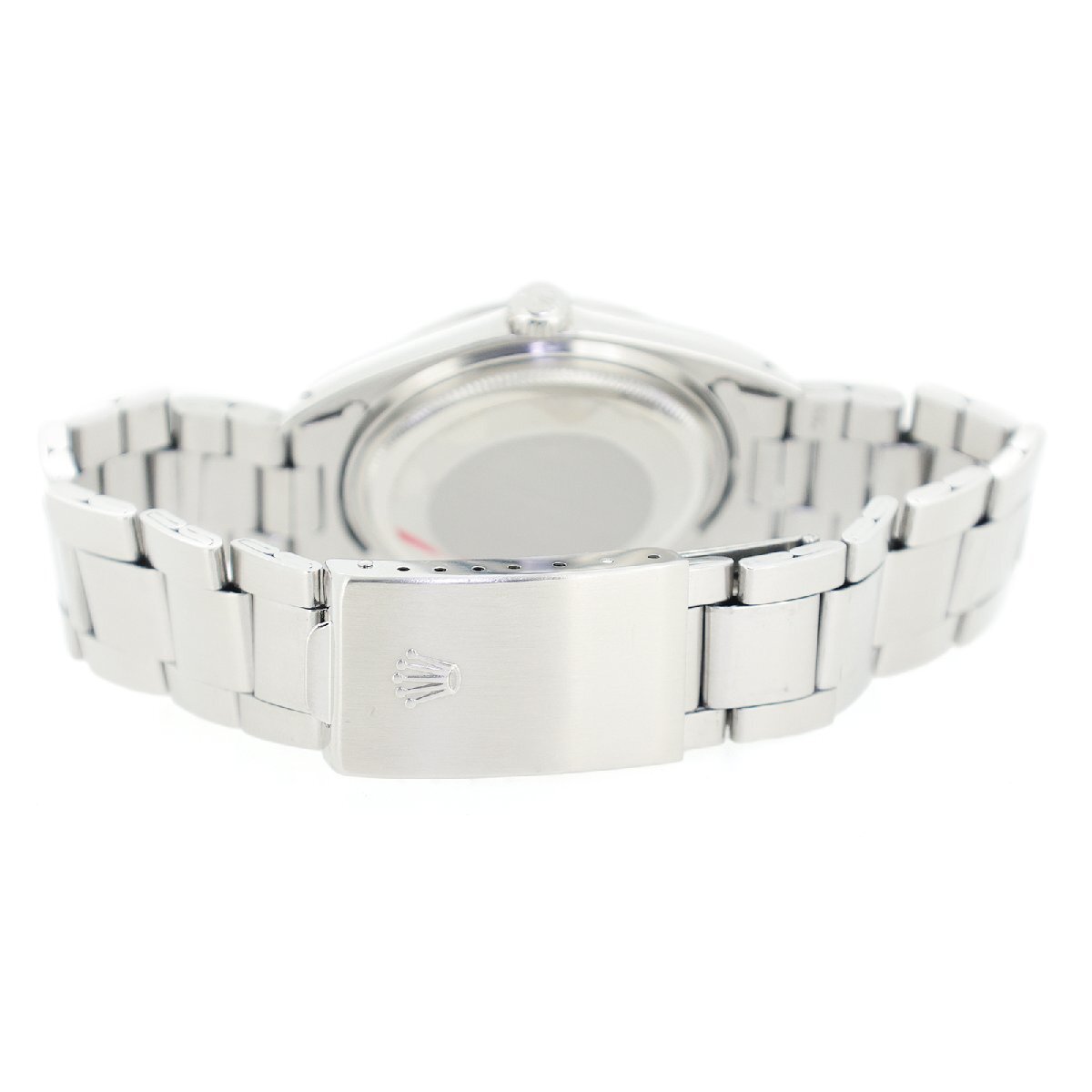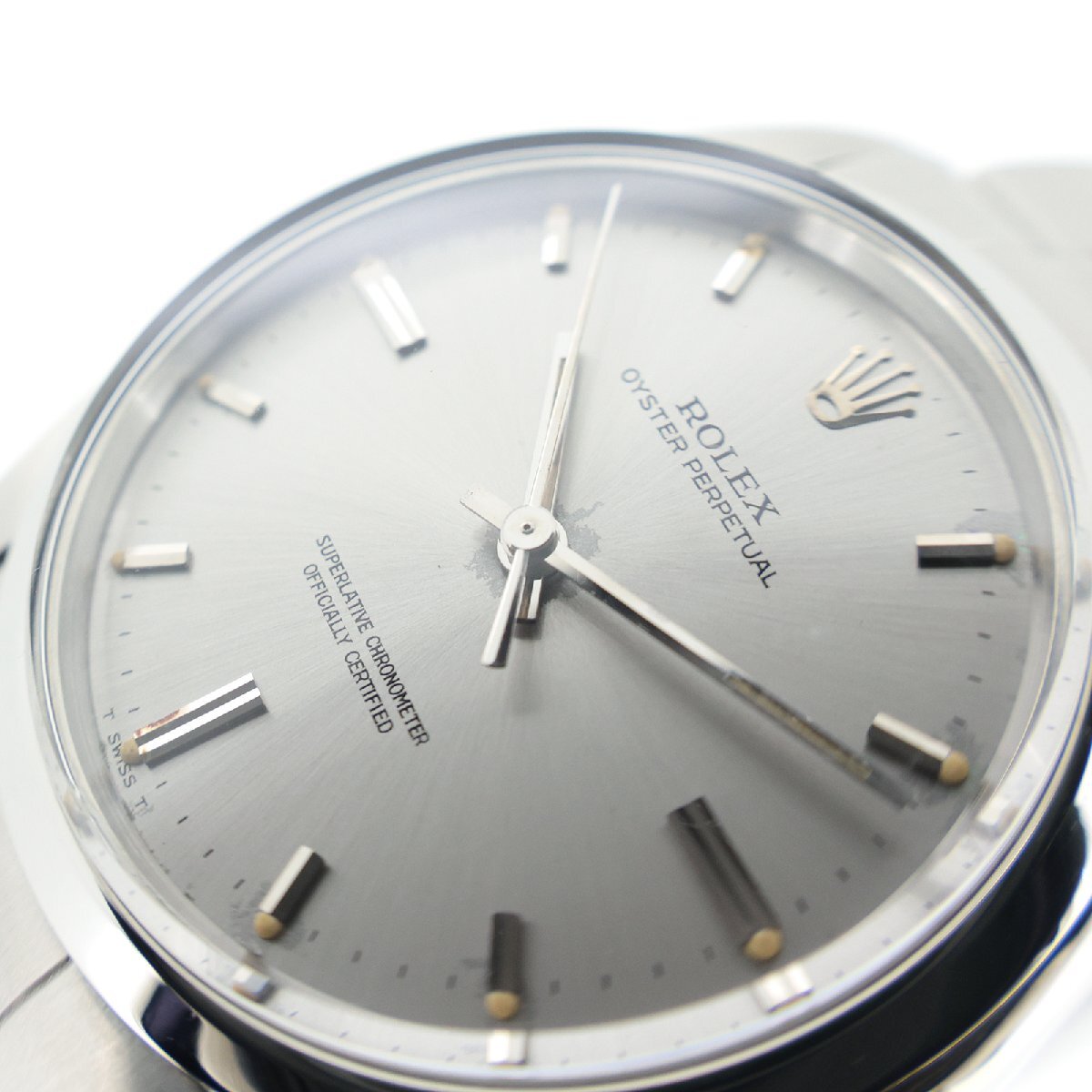全体コンディション詳細 | ベルトとバックルに若干のスレがございます。 10時と8時方向のラグ根元に微細な打痕がございます。 若干のブレス垂れがございます。 風防の2時方向に薄いスレ傷がございます。 時針分針に腐食、文字盤の中央と1時2時5時10時等のところどころにも腐食がございます。 |