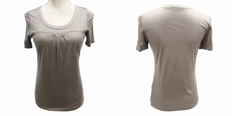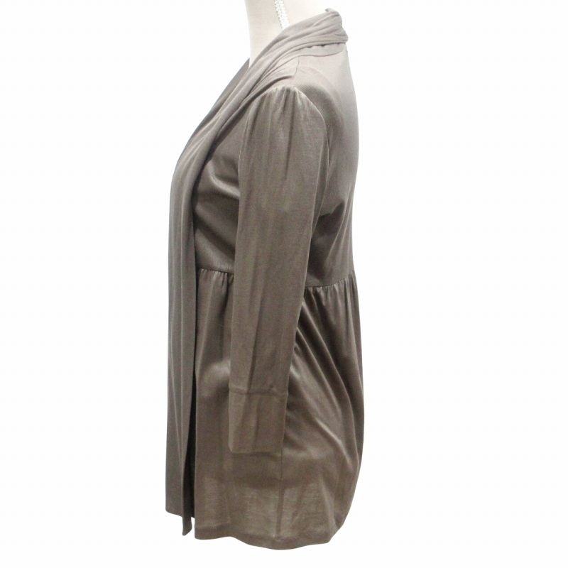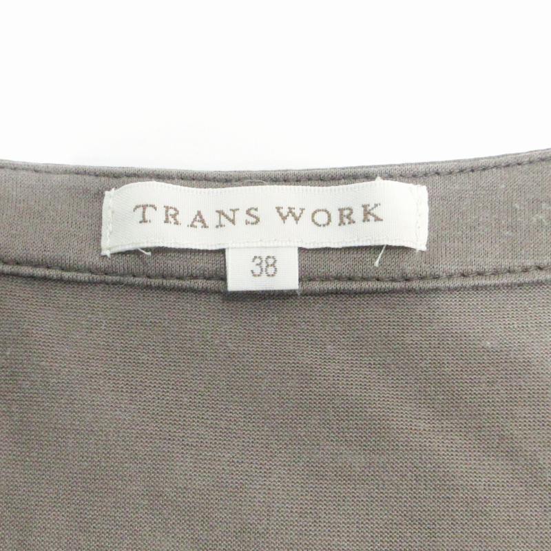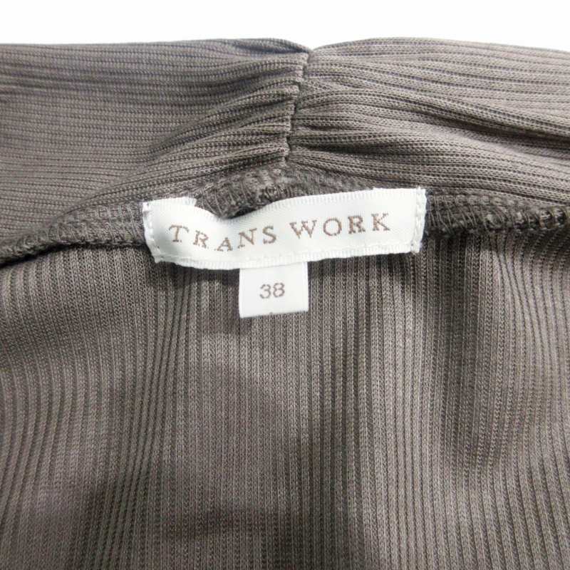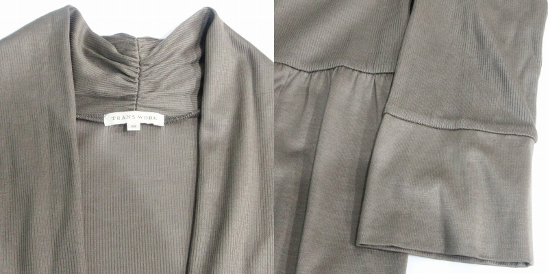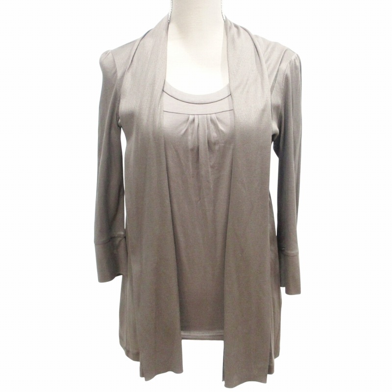 トランスワーク TRANS WORK アンサンブルニット カーディガン カットソー 切替 リブ ギャザー 38 約M ブラウン ベージュ 系 レディース