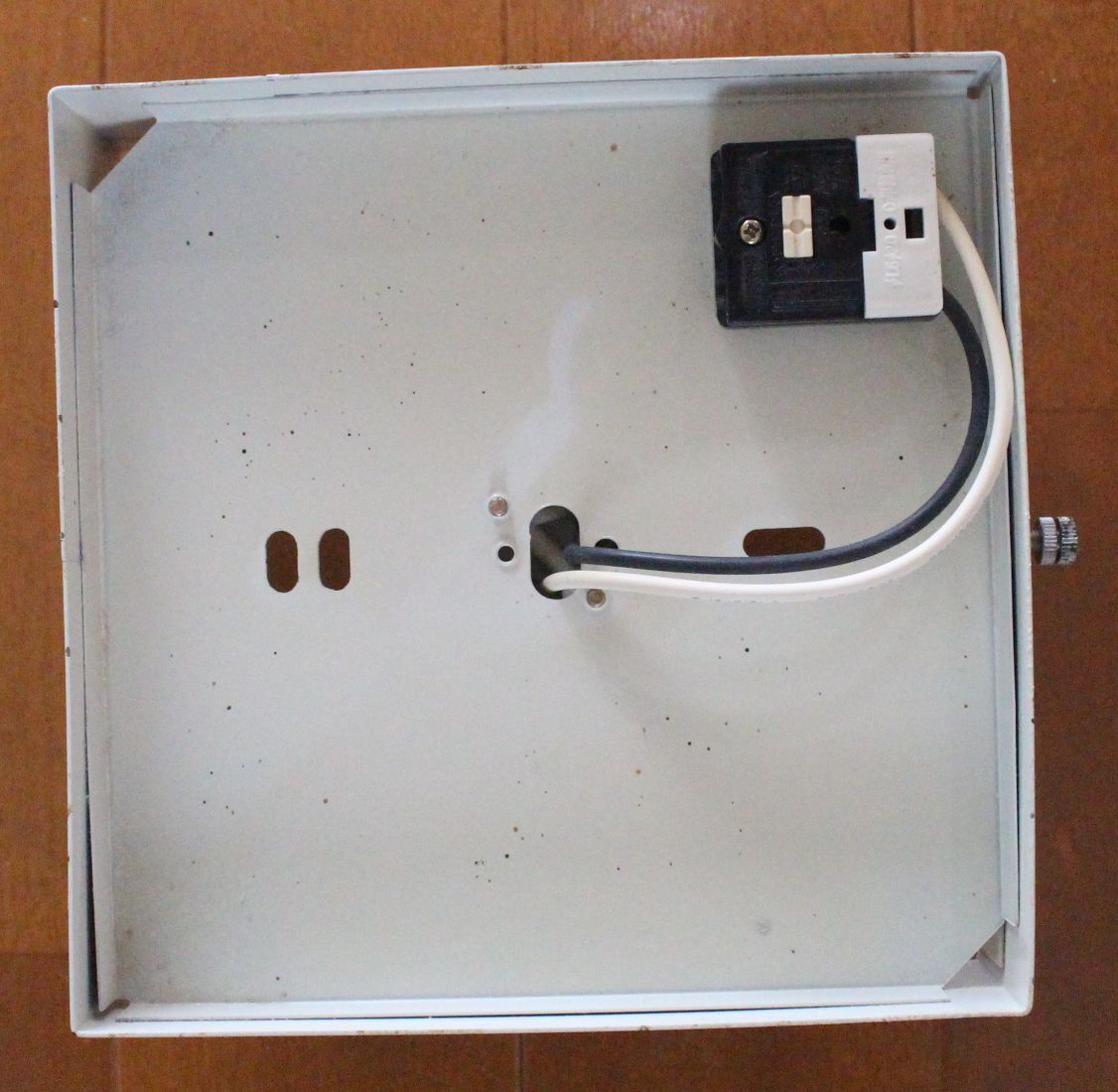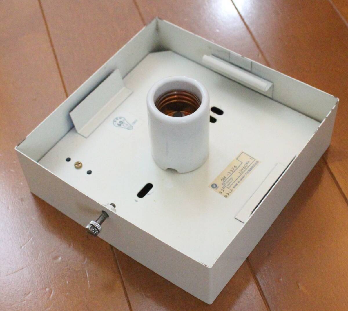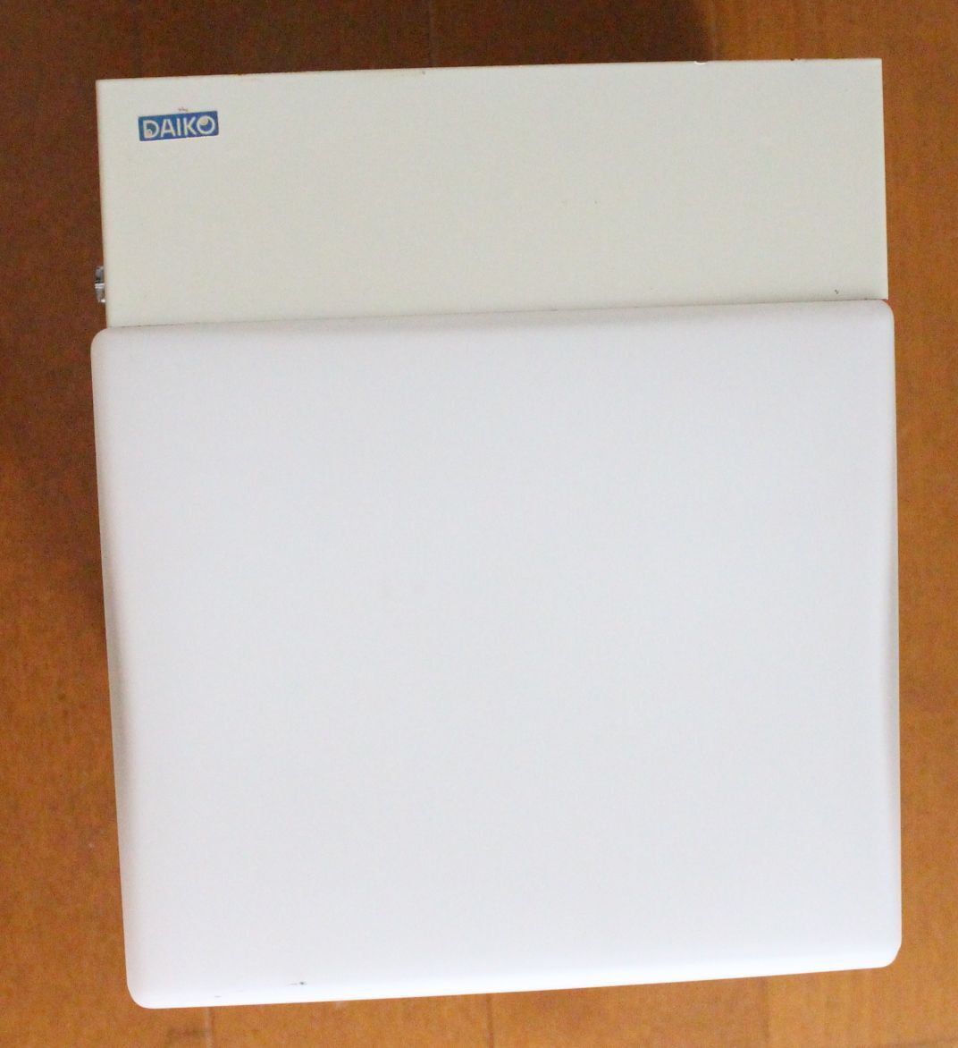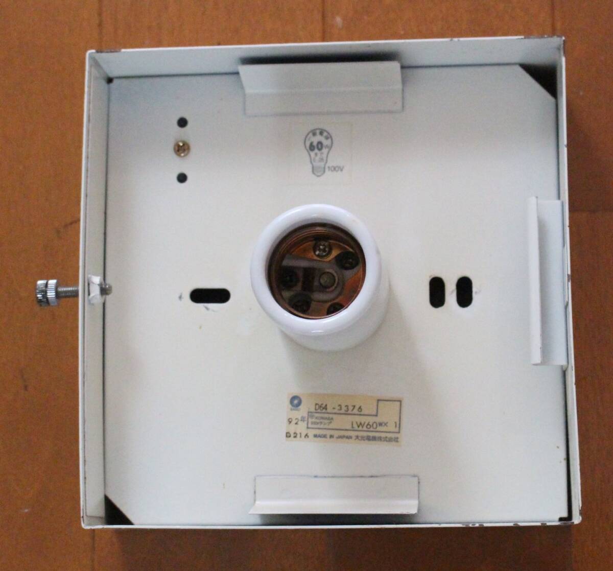 | 商品説明 | 天井照明 直付け配線タイプ E26電球 ガラスカバー密閉型 DAIKO 大光電機 D64-3376 ガラスカバー:乳白消し、カバーホルダーネジ式 ソケット部分:オフホワイト塗装(クリーム色)、金属製、ソケット端子自体は陶器製 熱に強いガラスカバー製です。一般白熱電球 60Wまで。LED電球も使えます。電球は付属しません。 [サイズ、重量] 全体:高さ17.5cm x 幅15cm x 奥行15cm、1.44kg ガラスカバーのみ:高さ13cm x 幅15cm x 奥行15cm、1.01kg ソケット部のみ:高さ4.5cm x 幅14.5cm x 奥行14.5cm、430g(電球を除く) 取付ネジ2本付属、長さ50mm、ネジ取付間隔:67mm~83mm [設置] ・直配線タイプです。引掛シーリング等には取付できません。 小さな+ネジ部(金属台の黒色部)に電線を固定します、電線被ふくは13mm程度むいてください。 ・ソケット部分はネジ2本で天井に固定します。 ・ガラスカバーは片側をはめ込み、反対側をネジ止めして固定します、手回しでネジ止めできます。 92年 当時価格13,000円 |