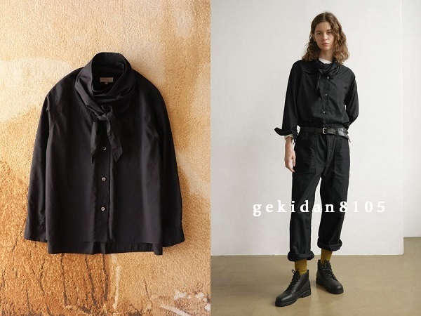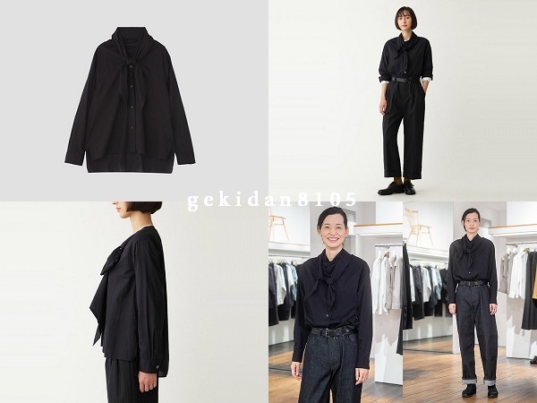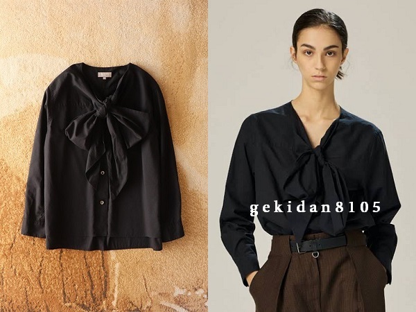 PIECE DYED WASHED COTTON 2022AWコレクションから 巻き方、結び方によって何通りものアレンジした着こなしを楽しめる フロントの大きなボウタイのデザインが目を惹く、 新型のYOKE TIE SHIRTです。 シーズンを象徴するキーアイテムとして、 シーズンカタログにも掲載され、 発売前から大きな注目を集めました。 マーガレットハウエルのラインではめずらしく、 生地を織ってから染色を施す「 後染め 」という製法で作られた素材で、 適度なハリがありながらも柔らかさを感じられる 着心地の良さにもこだわった一着となっております。 スタイルは新型のYOKE TIE SHIRTで、 首元に巻いてネックスカーフとして着るのも素敵ですし、 胸元で結んでリボンタイとして着ることも出来る、 着る人の好みと結び方によってがらりと雰囲気が変わるので、 着こなし方の違いも楽しんでいただけるデザインに仕上がっています。 大きなボウタイが印象的なスタイルですが、 ボディはクラシックなシャツのディテールを用い、 カフスや剣ボロなど甘くなりすぎないようにアクセントを効かせた 大人のコーディネートにもピッタリと合う コーディネートの主役になるアイテムです。 シンプルに一枚で着るのはもちろん、 ジャケットやカーディガンと合わせても ボウタイのデザインがポイントになって、 マーガレットハウエルらしいモードで遊び心のある 上品で洗練されたブリティッシュモダンなオシャレを演出してくれます。 タイムレスにご着用いただけるデザイン・カラーで、 スカートからトラウザーまでマルチに合わせられ、 オン・オフ問わず愛用できるキレイめなルックが嬉しい、 オールシーズンに活躍する、使い勝手の良いコレクションアイテムとなっております。 定価も高いプレミアムな商品で、 全国完売となっているアイテムですので、 買い逃してしまった方、お探しだった方はぜひ。 コンディション:2~3回着用(極美品) ※目立った汚れやダメージなし カラー:BLACK サイズ:2 総丈:約68cm 肩幅:約44cm 身幅:約55cm 袖丈:約56cm 素材:コットン100% 定価:39,600円 | ||