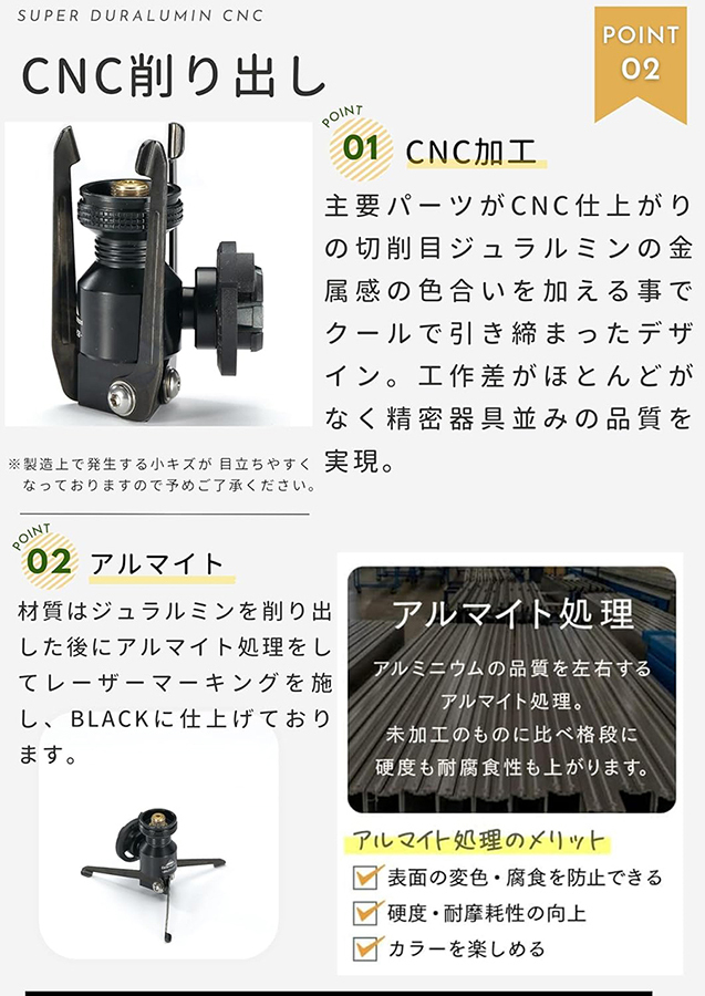 ●材質はジュラルミンを削り出した後にアルマイト処理をしてレーザーマーキングを施し、BLACKに仕上げております。