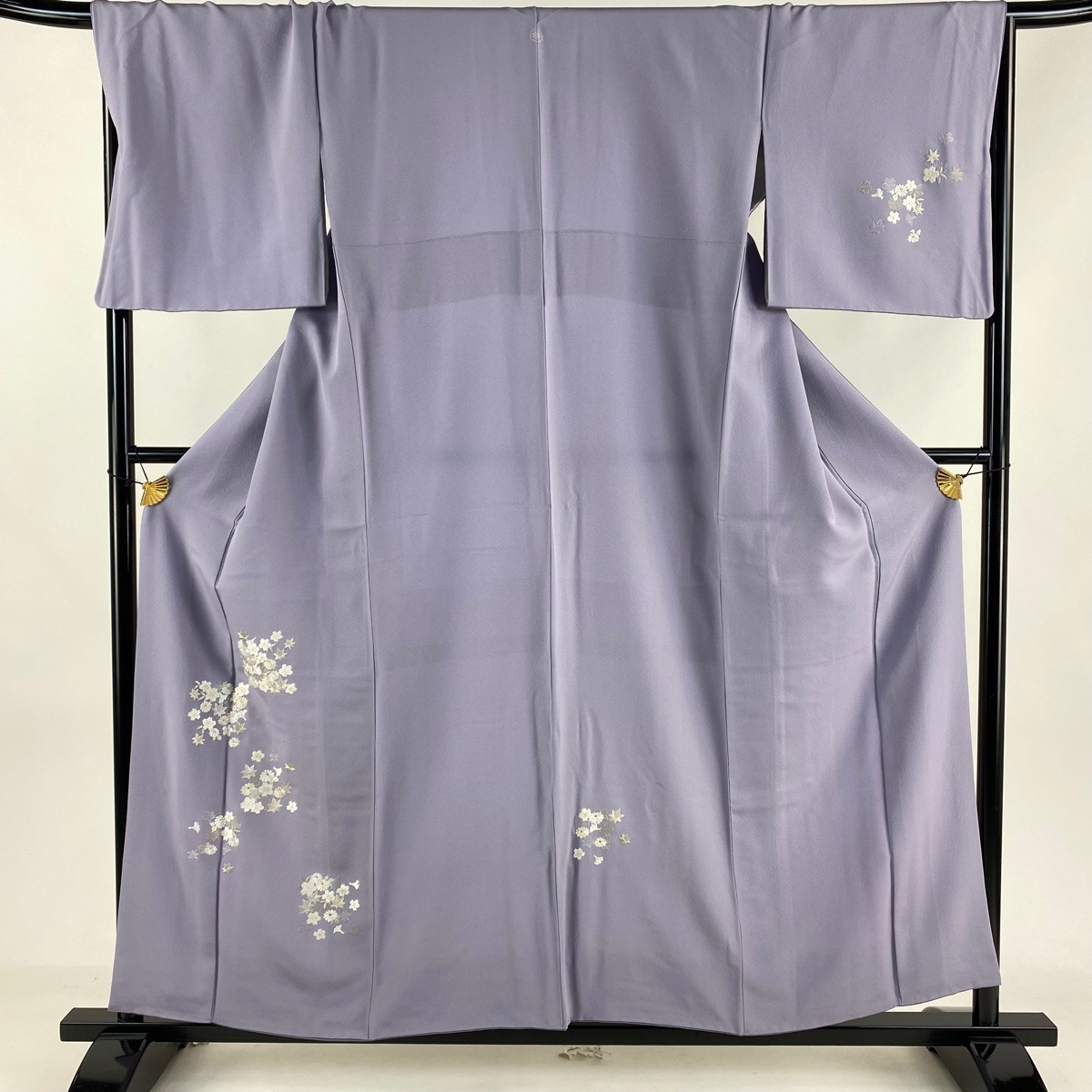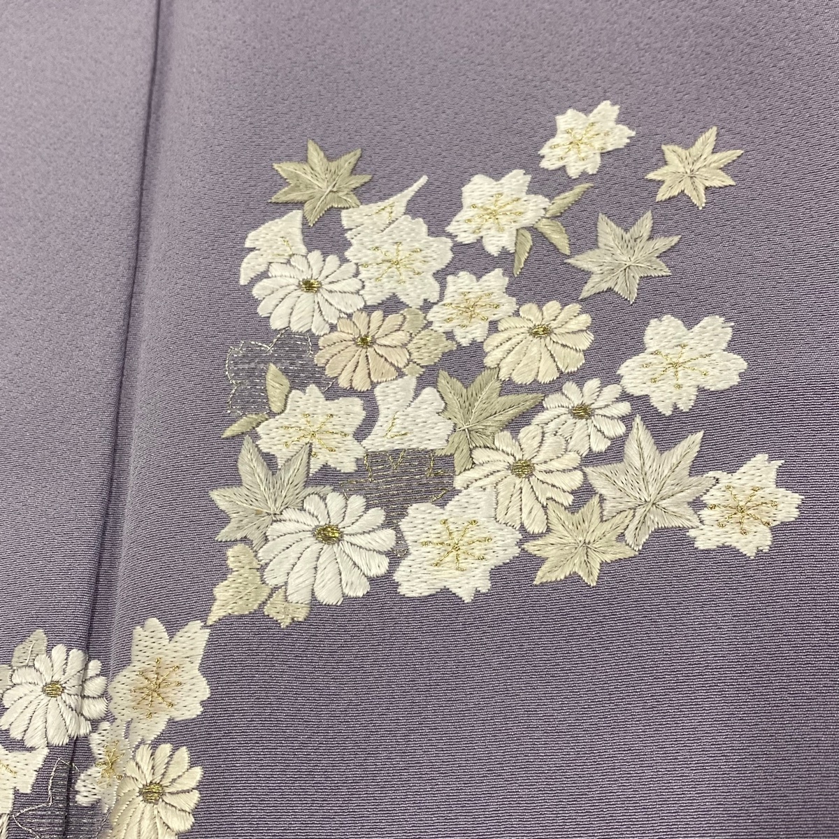 | 付下げ 名品 やまと 菊 桜楓 刺繍 金銀糸 紫 袷 身丈156.5 裄丈69.5 L 正絹 【中古】 |