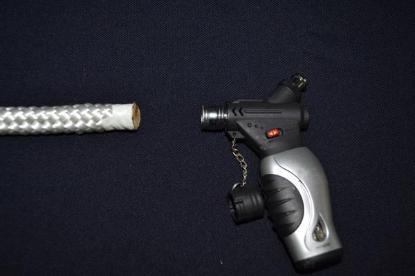●ロープやひもの切断(切る)は、ビニールテープを巻いてテープの上から切り、切り口は必ず(ターボ)ライターで強く焼いて溶かして下さい。