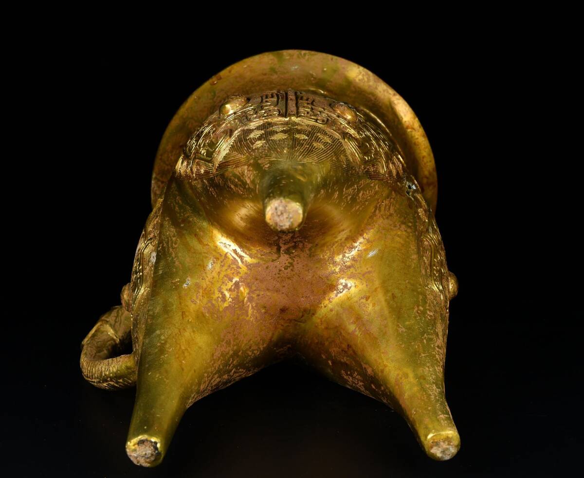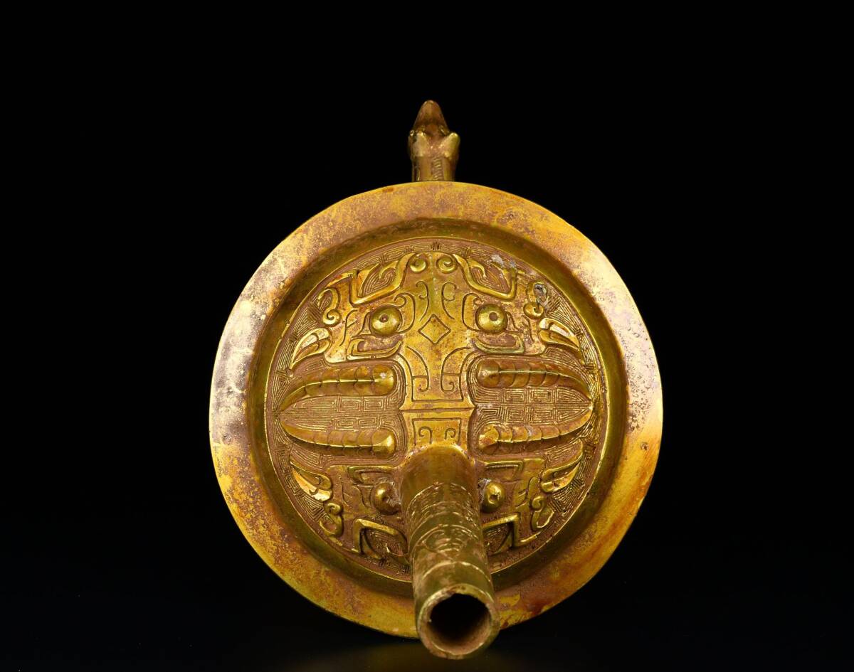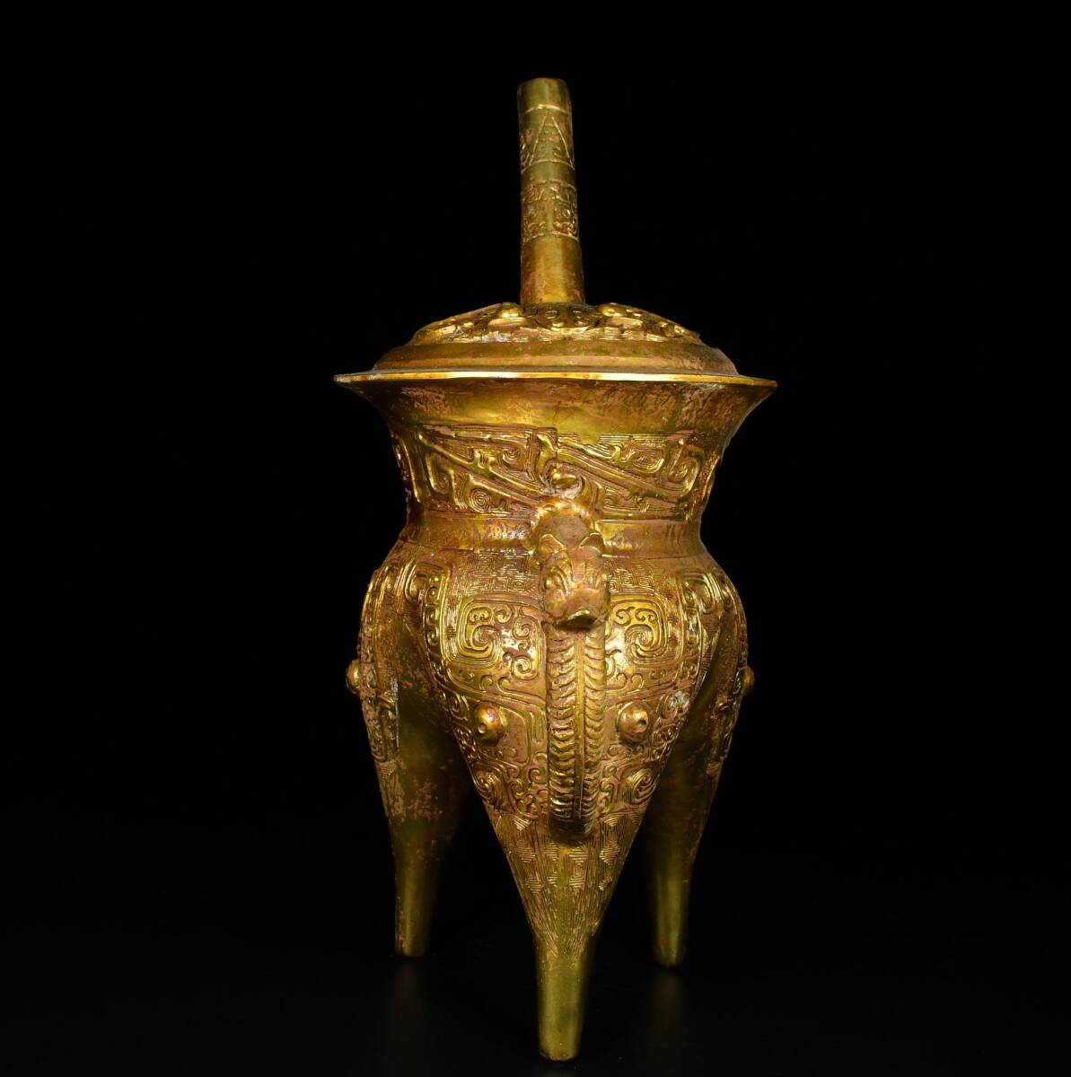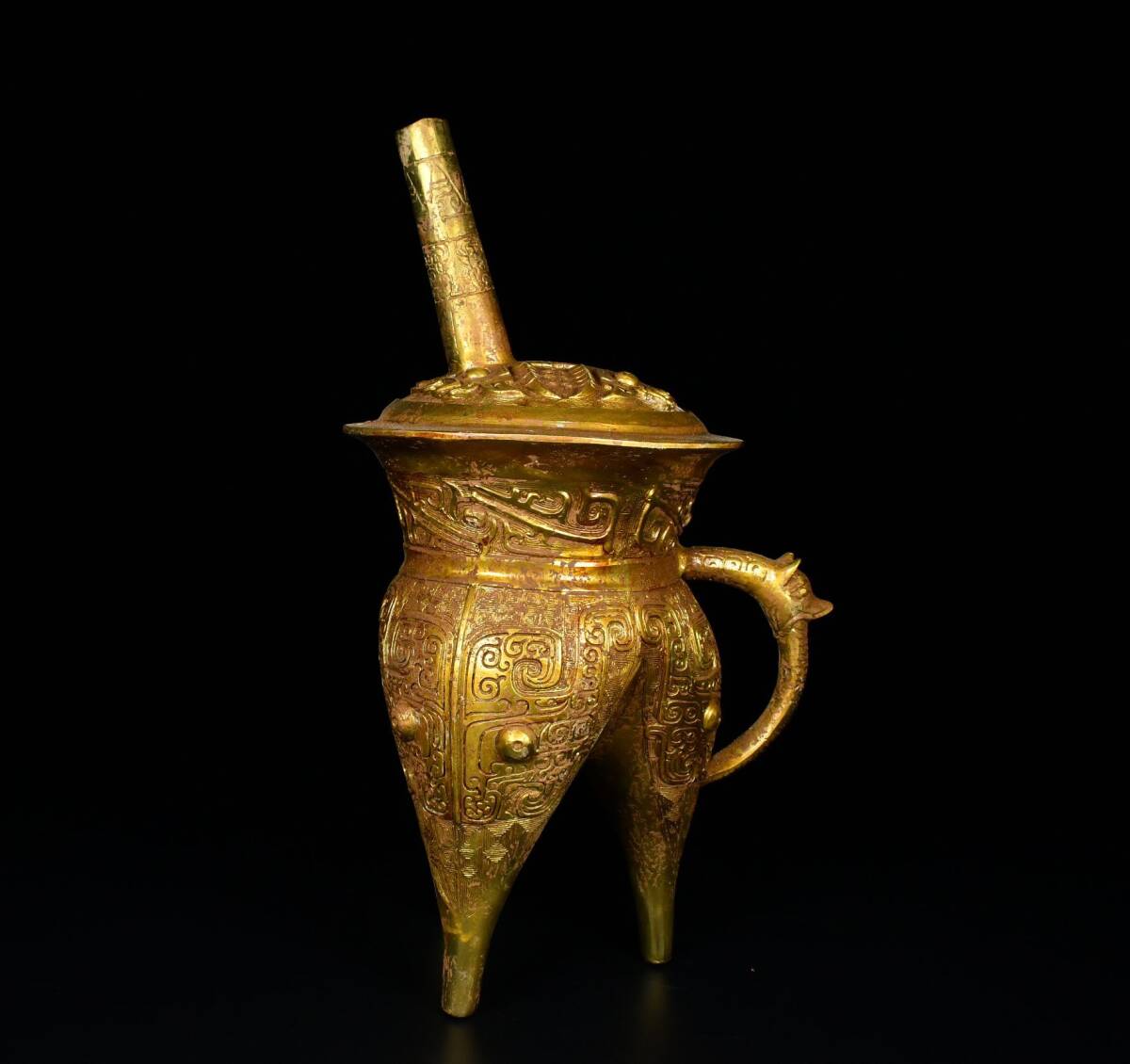 | 【蔵友館蔵品・戦・青銅製・塗金・長嘴禾壺・青銅器】・古董品・中国古玩・時代物・希少珍品・置物・賞物・中国時代美術 |