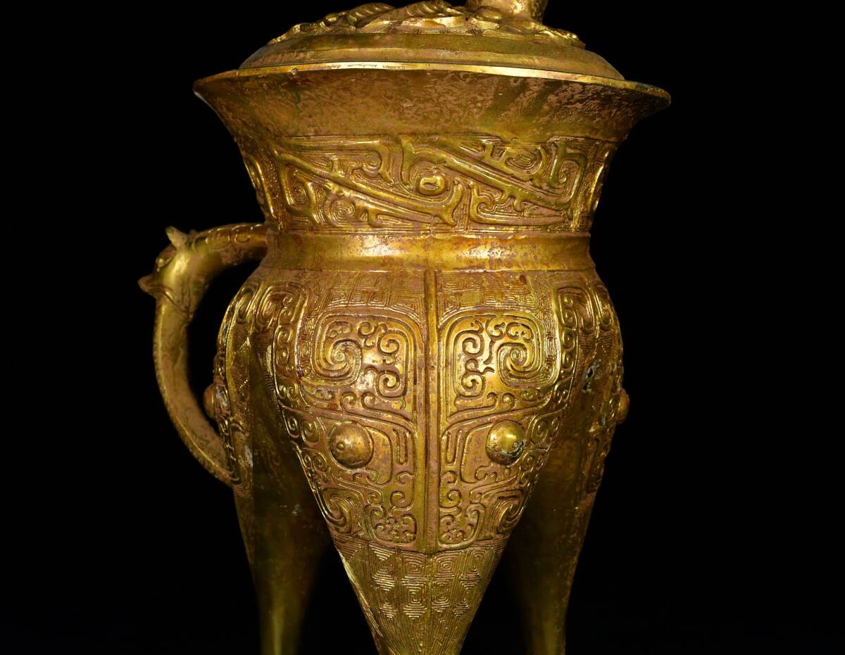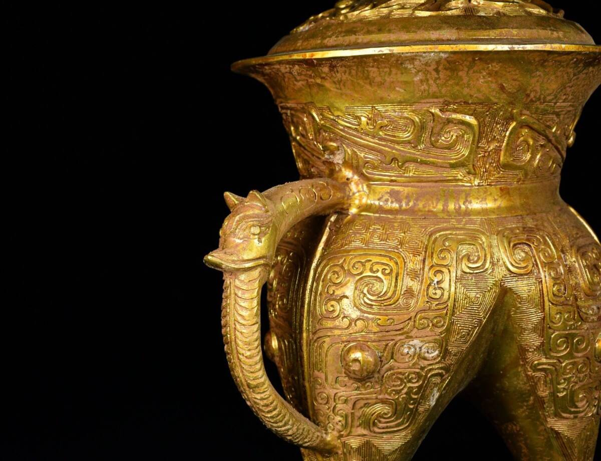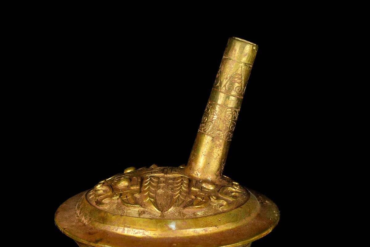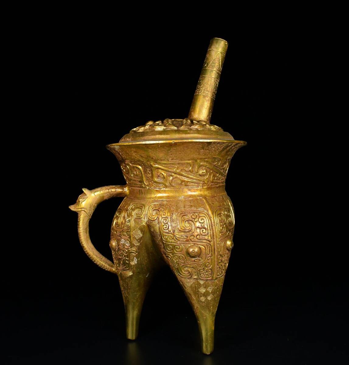 | 【蔵友館蔵品・戦・青銅製・塗金・長嘴禾壺・青銅器】・古董品・中国古玩・時代物・希少珍品・置物・賞物・中国時代美術 |