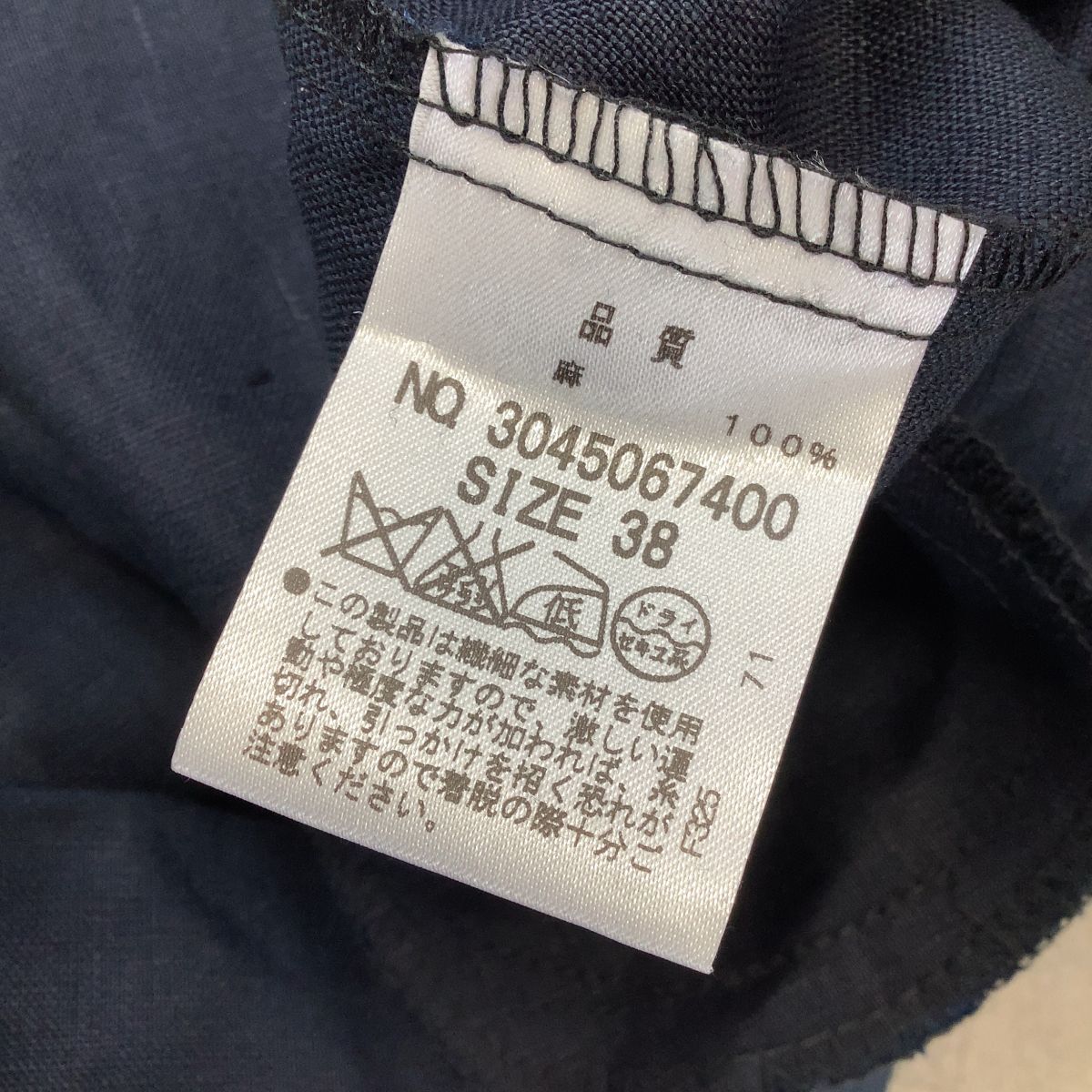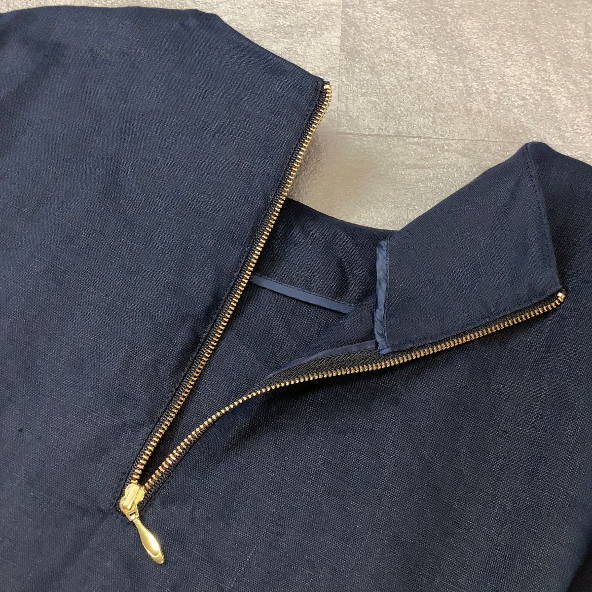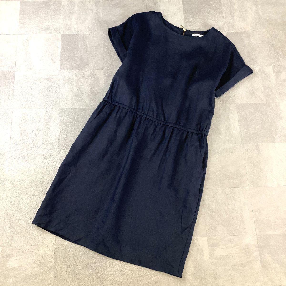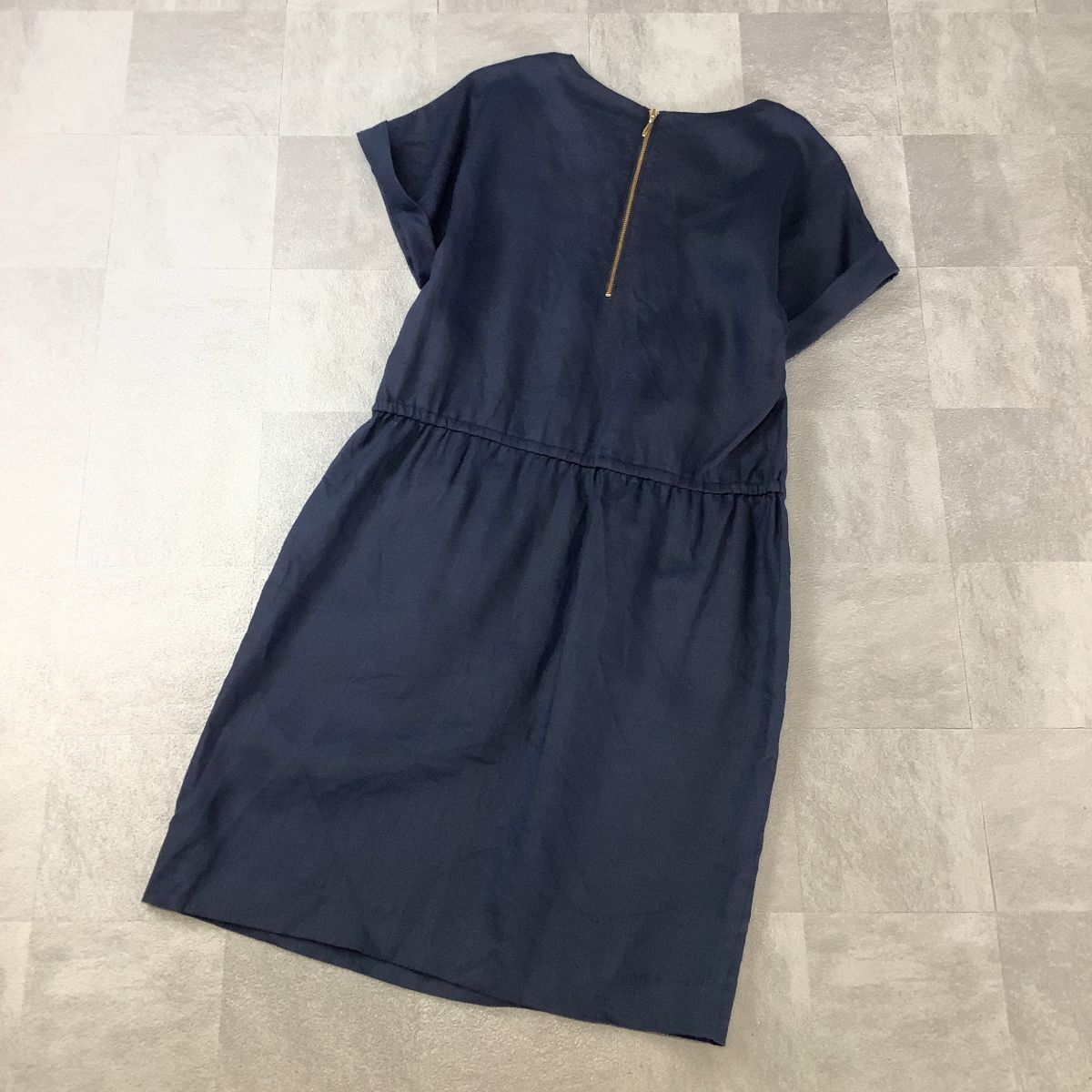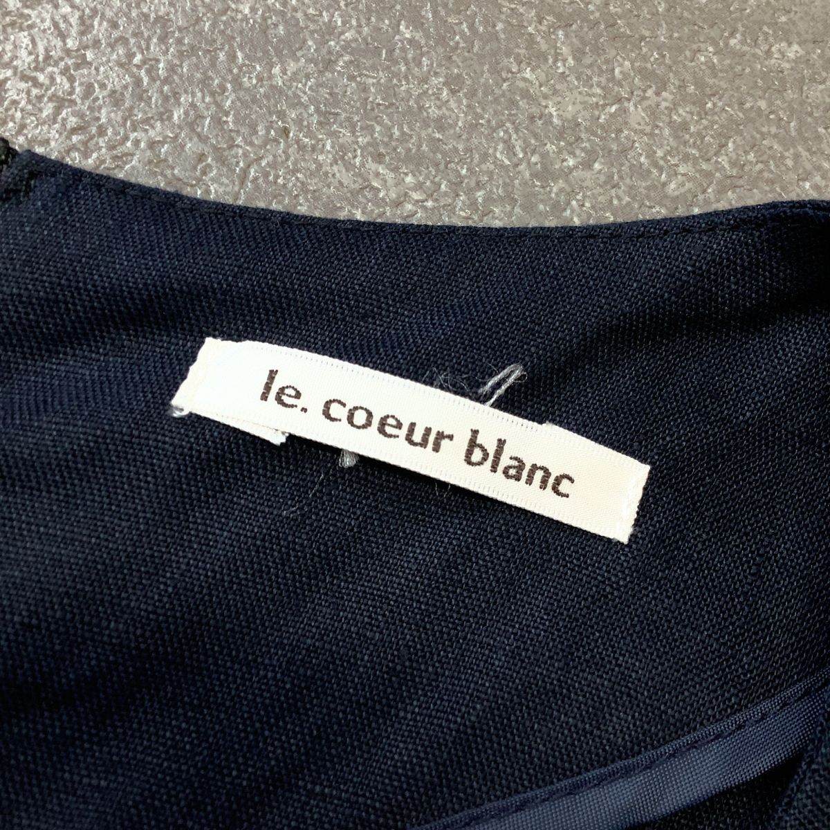 【爽やかなリネン100%】美品 le.coerur blanc リネン ワンピース 半袖 レディース 38 M ネイビー