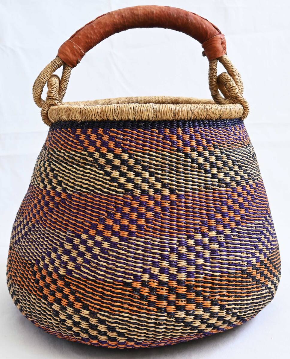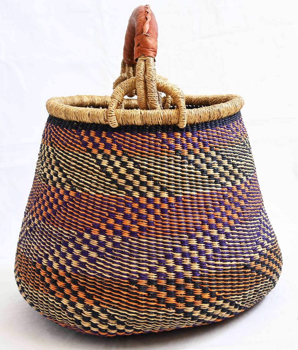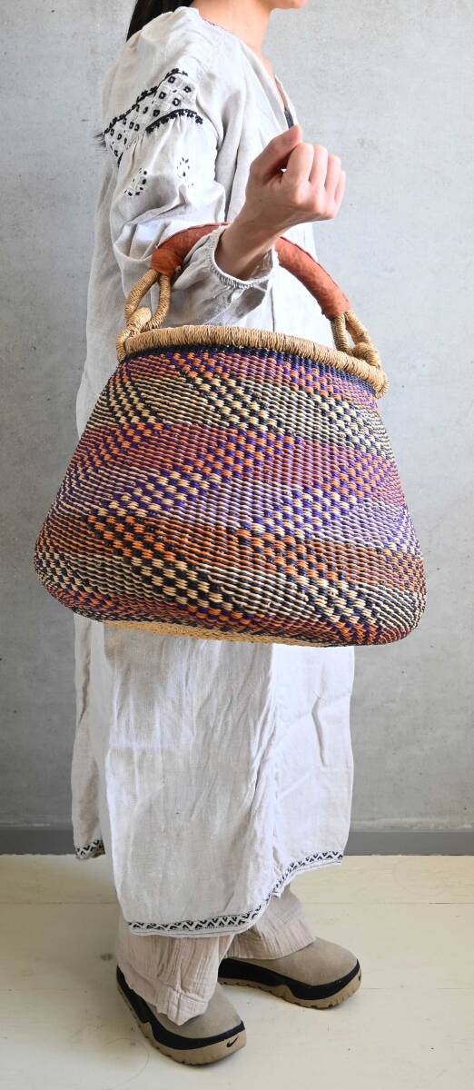 アフリカ・ガーナ北部の州都ボルガタンガで作られるバスケットは、ナチュラルな風合いとアフリカらしいカラフルさで世界中で人気があります。