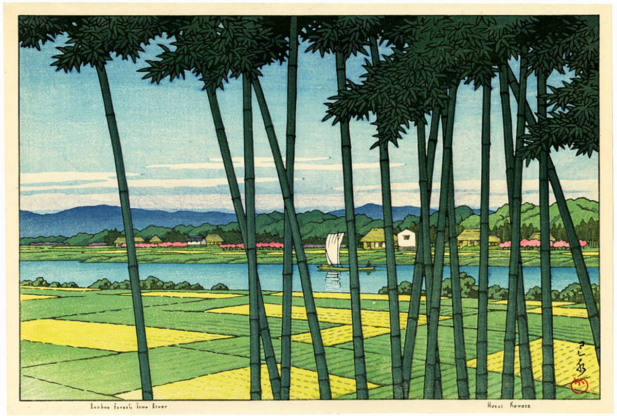 5作品(No82) 川瀬巴水 越前和紙仕上げ ①ちくぜんはこざき②出雲安来清水③三菱深川別邸④Bamboo Forest ⑤河口湖