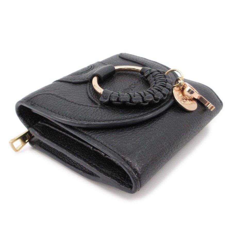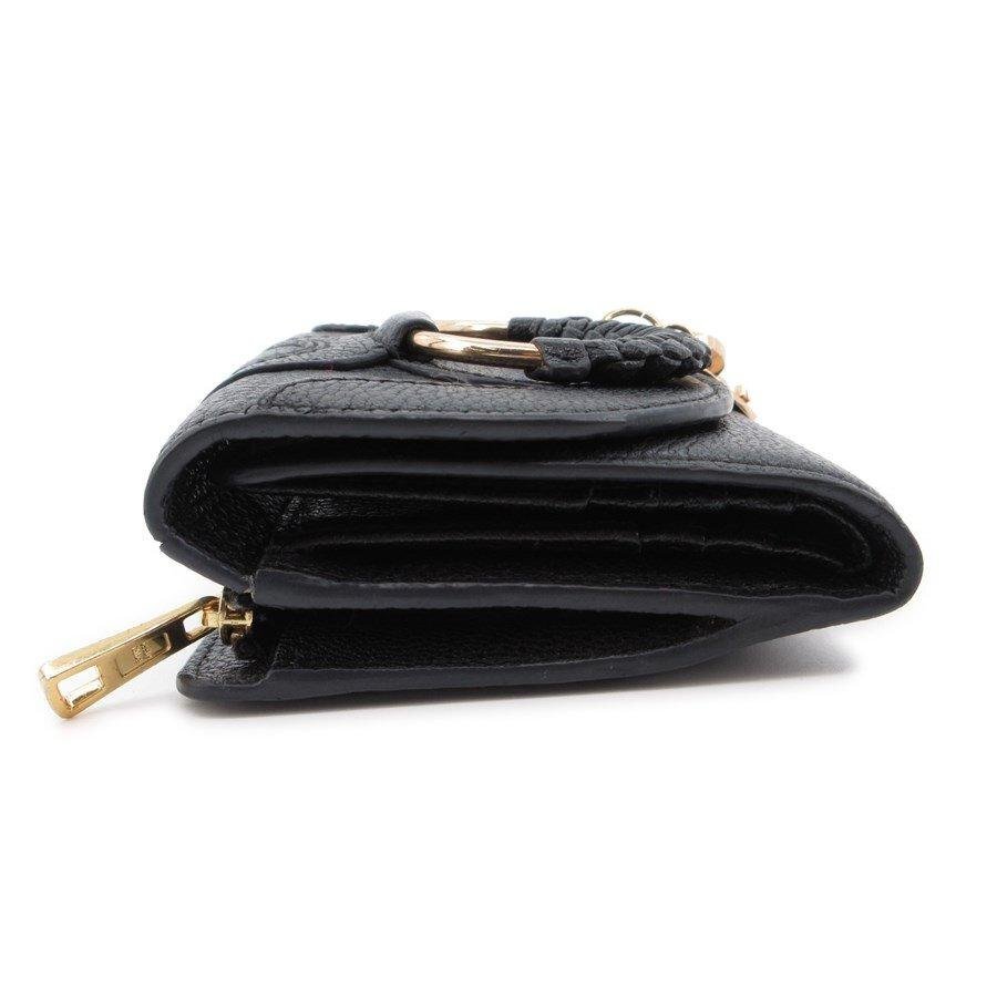 ・送料無料 美品 シーバイクロエ SEE BY CHLOE 財布 三つ折り コンパクトウォレット ミニ財布 ハナ hana レザー 本革 D1HMQD 黒 ブラック系 レディース