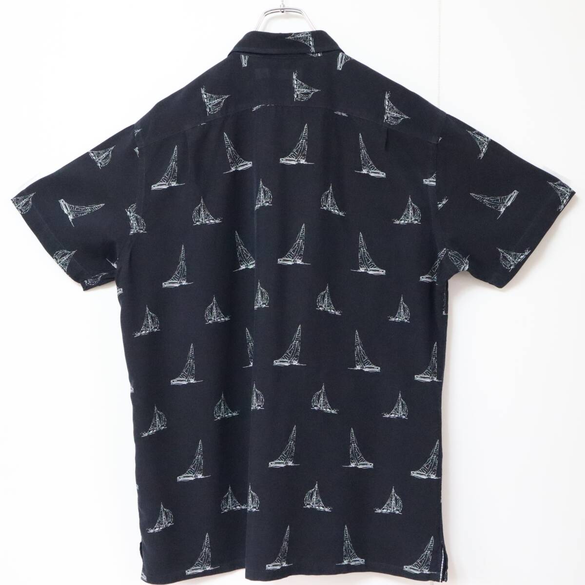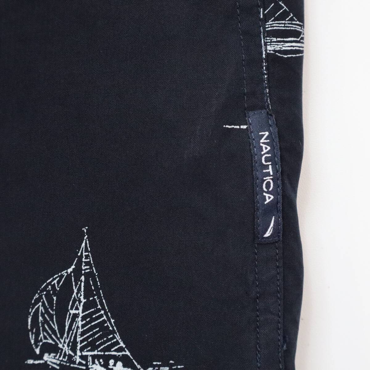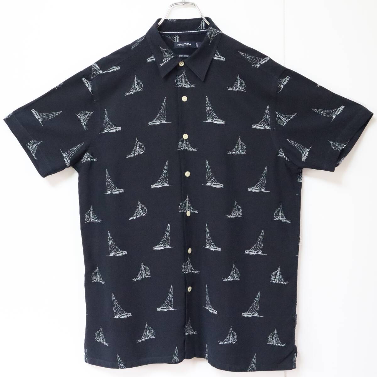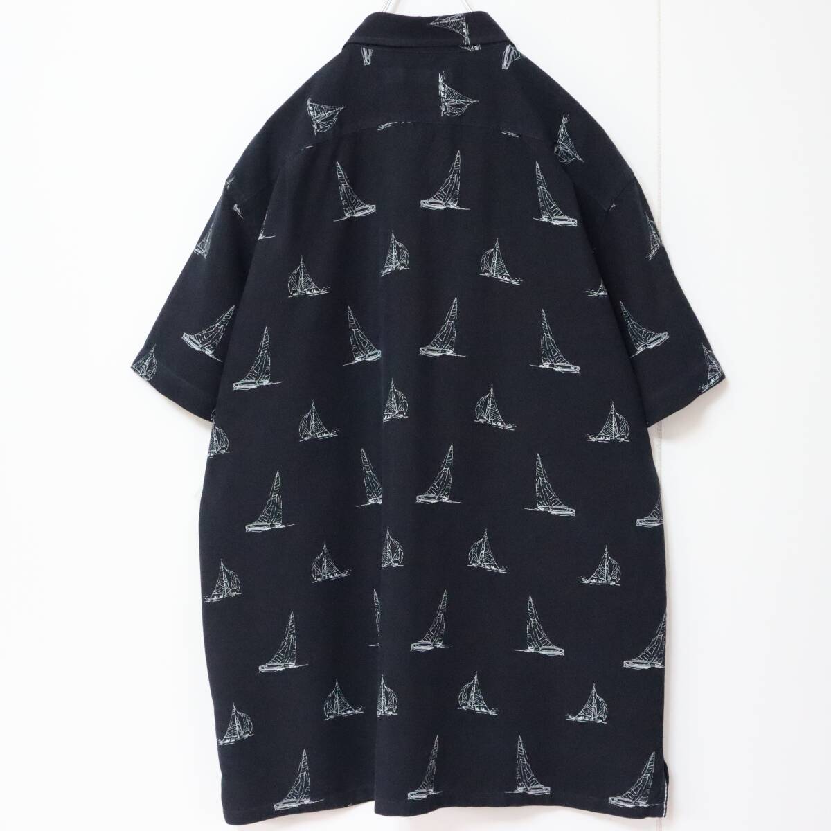 【シルク100%】ノーティカ 総柄シャツ ヨット セーリング柄 Lサイズ 紺色