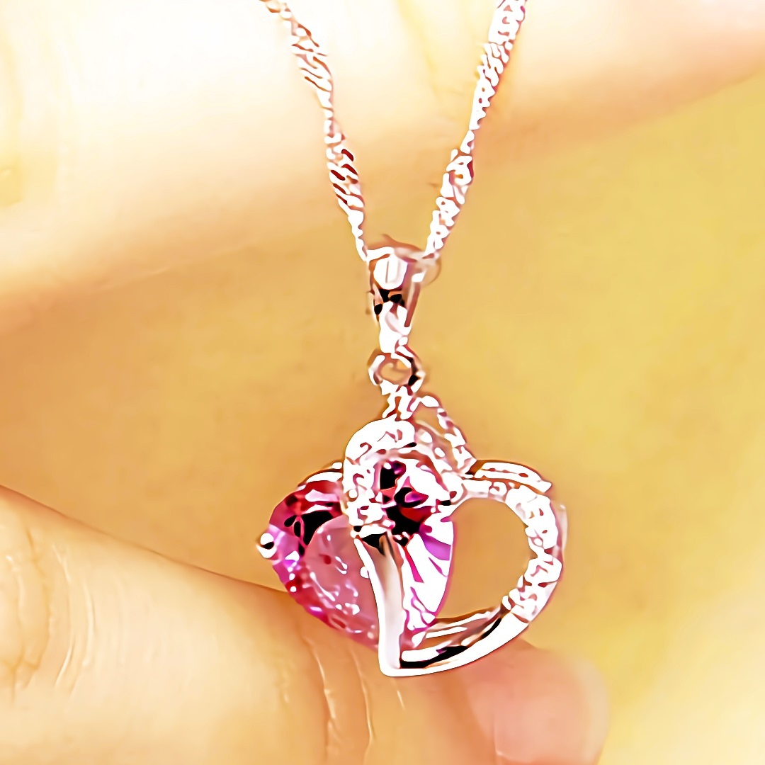 新品★送料無料★万華鏡の輝き桜色ピンクダイヤハートプラチナ仕上925シルバーネックレス誕生日プレゼント旅行夏海連休ギフト国内発送