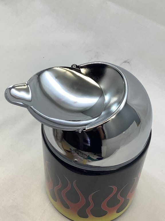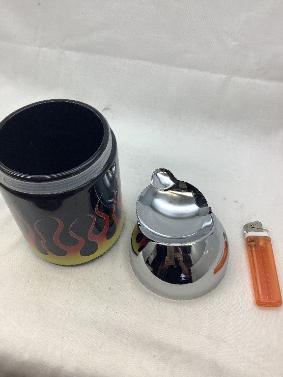 【313052】フタの部分をパカッと開けたら皿状になっていて灰を捨てやすい灰皿です。上の銀色部分は取り外し可能なので洗いやすくて便利です。健康の為に吸い過ぎには十分ご注意くださいませ。サイズH16.5 直径10cm 素材:セラミック