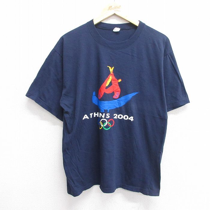 【商品名】 L★古着 半袖 ビンテージ Tシャツ メンズ 00年代 00s アテネ オリンピック コットン クルーネック 紺
