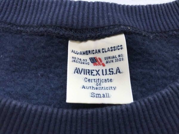 AVIREX アヴィレックス メンズ アメカジ ミリタリー 裏起毛 ビッグロゴプリント 長袖 スウェット トレーナー 綿74% ポリエステル26% S 紺 です。
