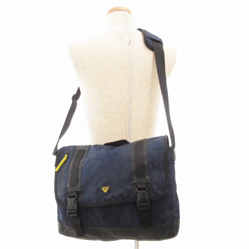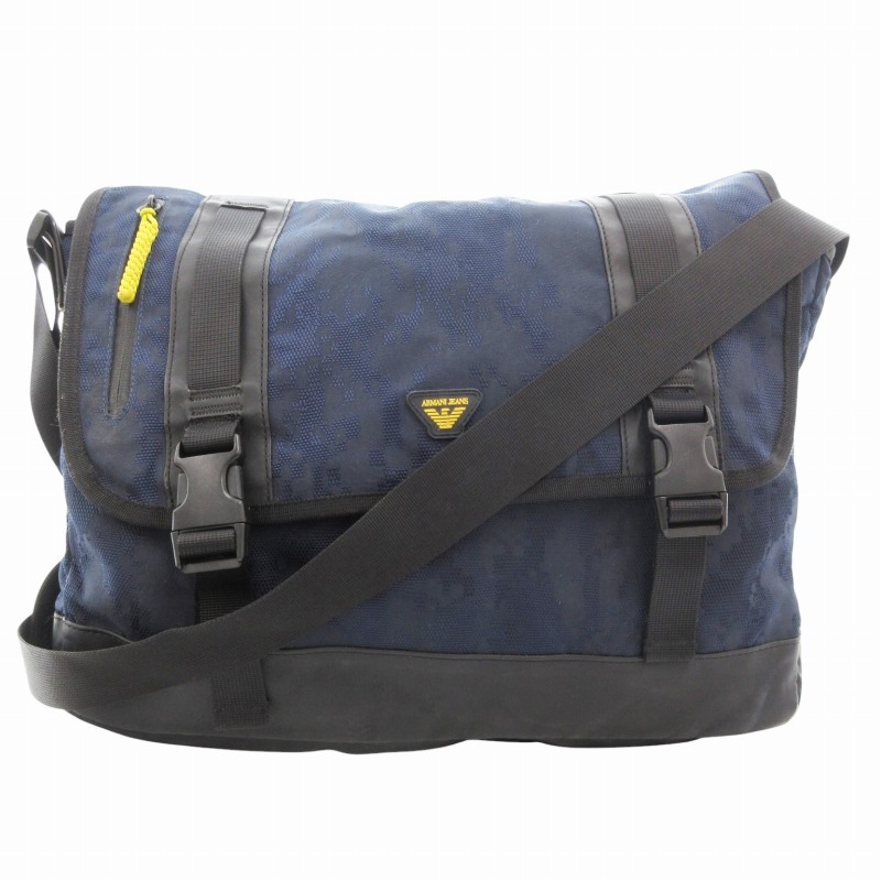アルマーニ ジーンズ ARMANI JEANS メッセンジャーバッグ ショルダー 斜め掛け ロゴ デジカモ柄 ナイロン 紺 ネイビー /GV