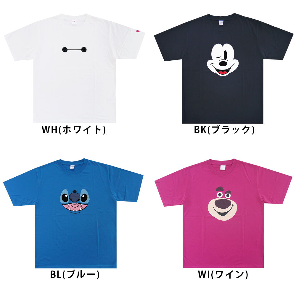 正規店仕入れの新品未使用品です 綿とポリエステル素材で、吸汗速乾に優れます 正面にミッキーマウス、スティッチ、ベイマックス、 ロッツォのフェイスプリント入り半袖Tシャツ |