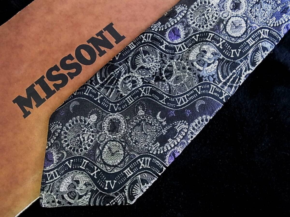★*:.【新品N】0800 【最高級モデル】ミッソーニ【刺繍・時計・アトラス・月】ネクタイ