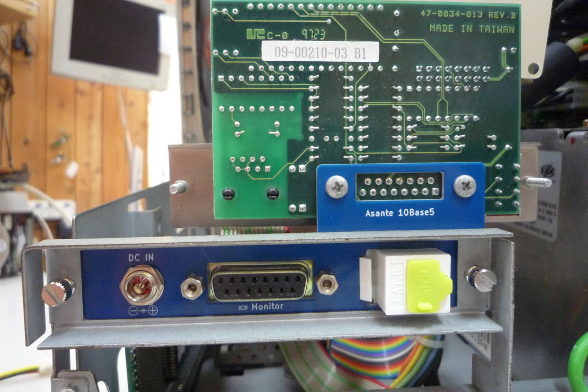 最上部にAsante LANカードのコネクタボードを機内内側向きに取り付けられ