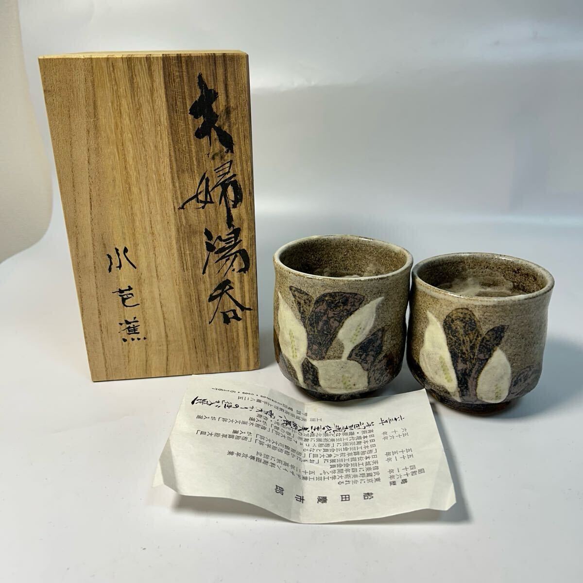 希少 夫婦湯呑み 船田慶市郎 水芭蕉 茶器 茶道具 食器 陶磁器 コレクション アンティーク ミ35