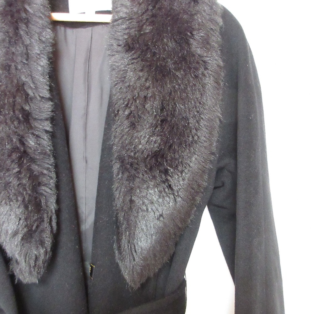 CALVIN KLEIN カルバンクライン カシミヤブレンド フェイクファーカラー ロング ガウンコート 9 ブラック